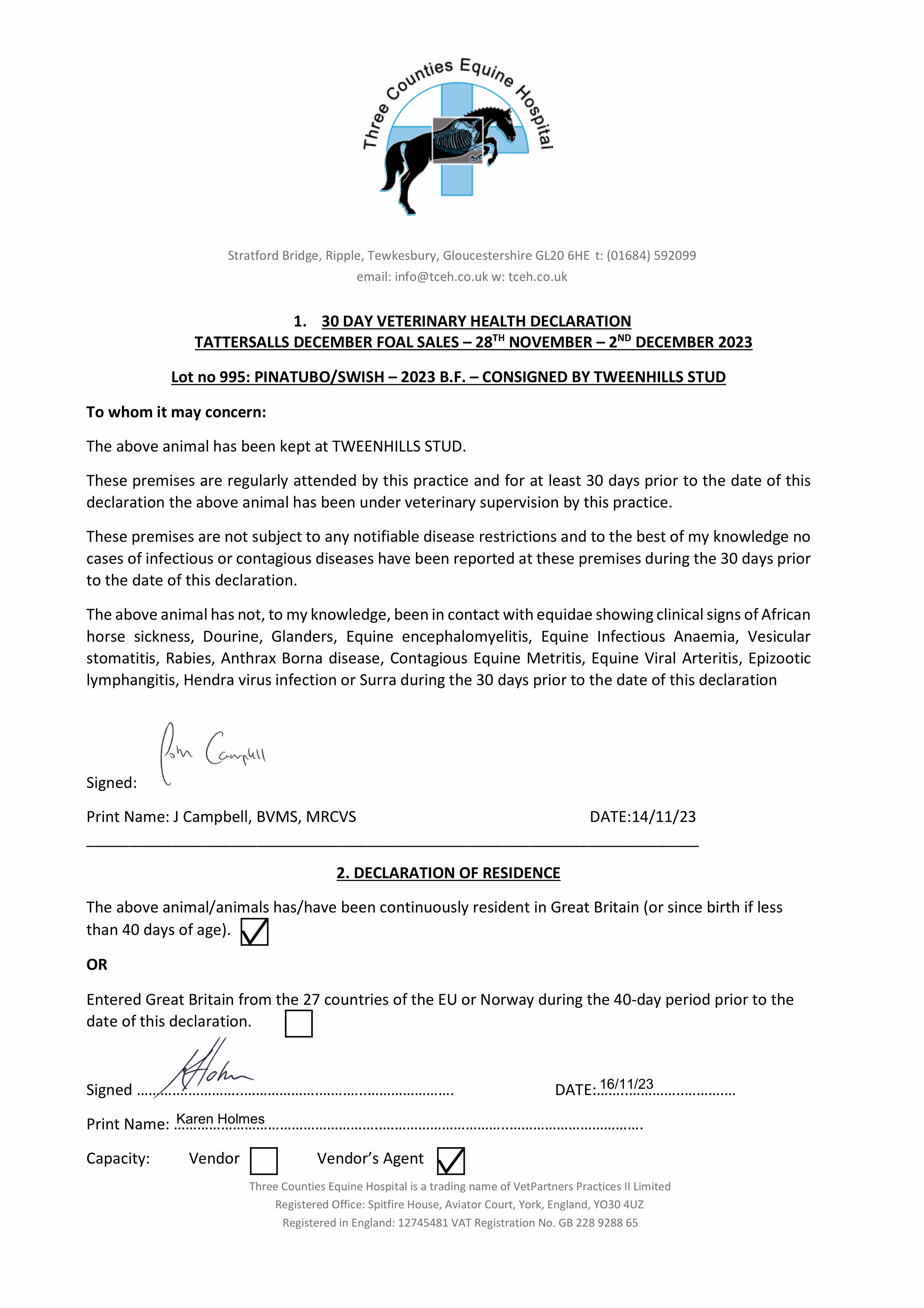 Consignor: Tweenhills Farm & Stud