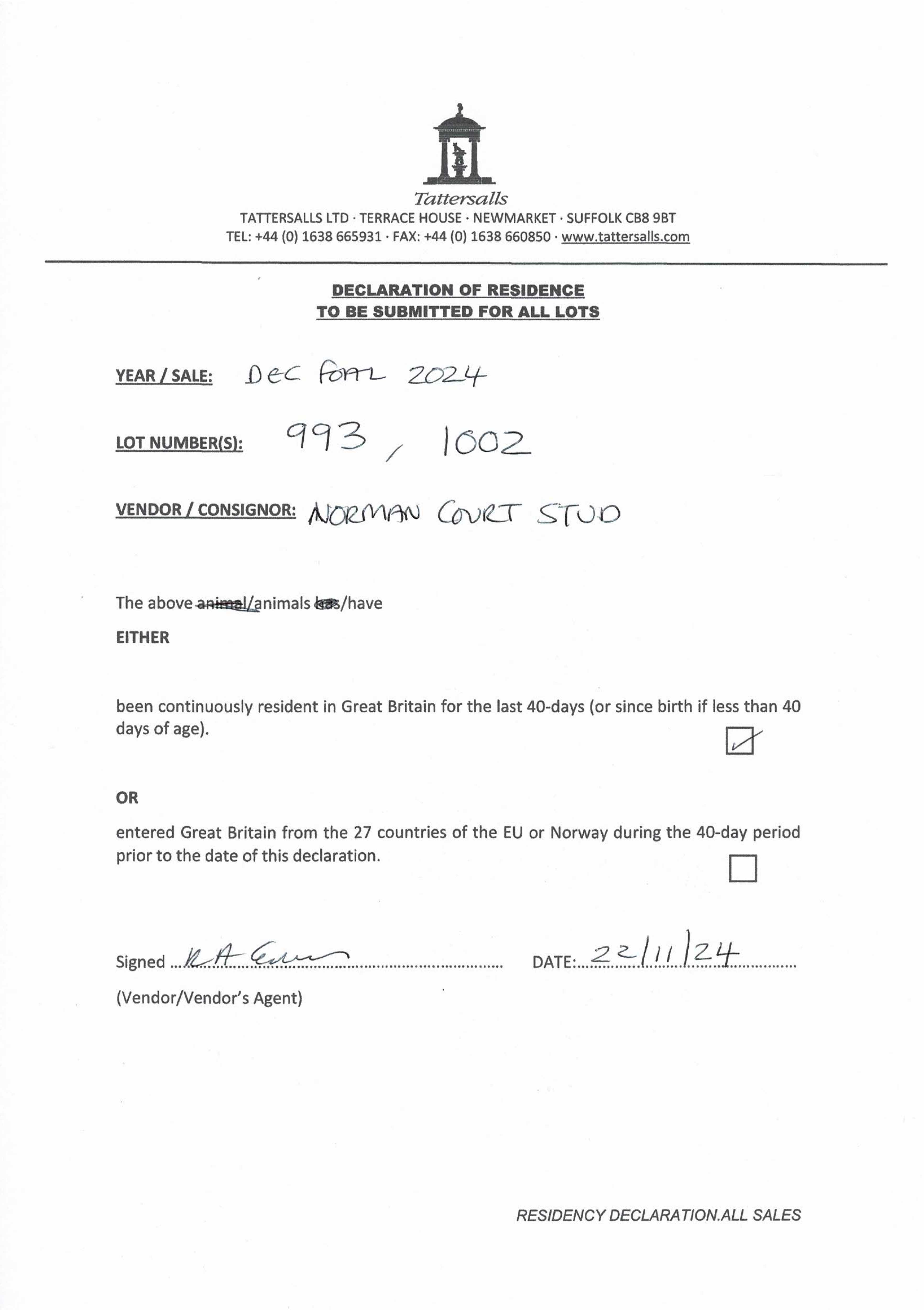 Consignor: Norman Court Stud