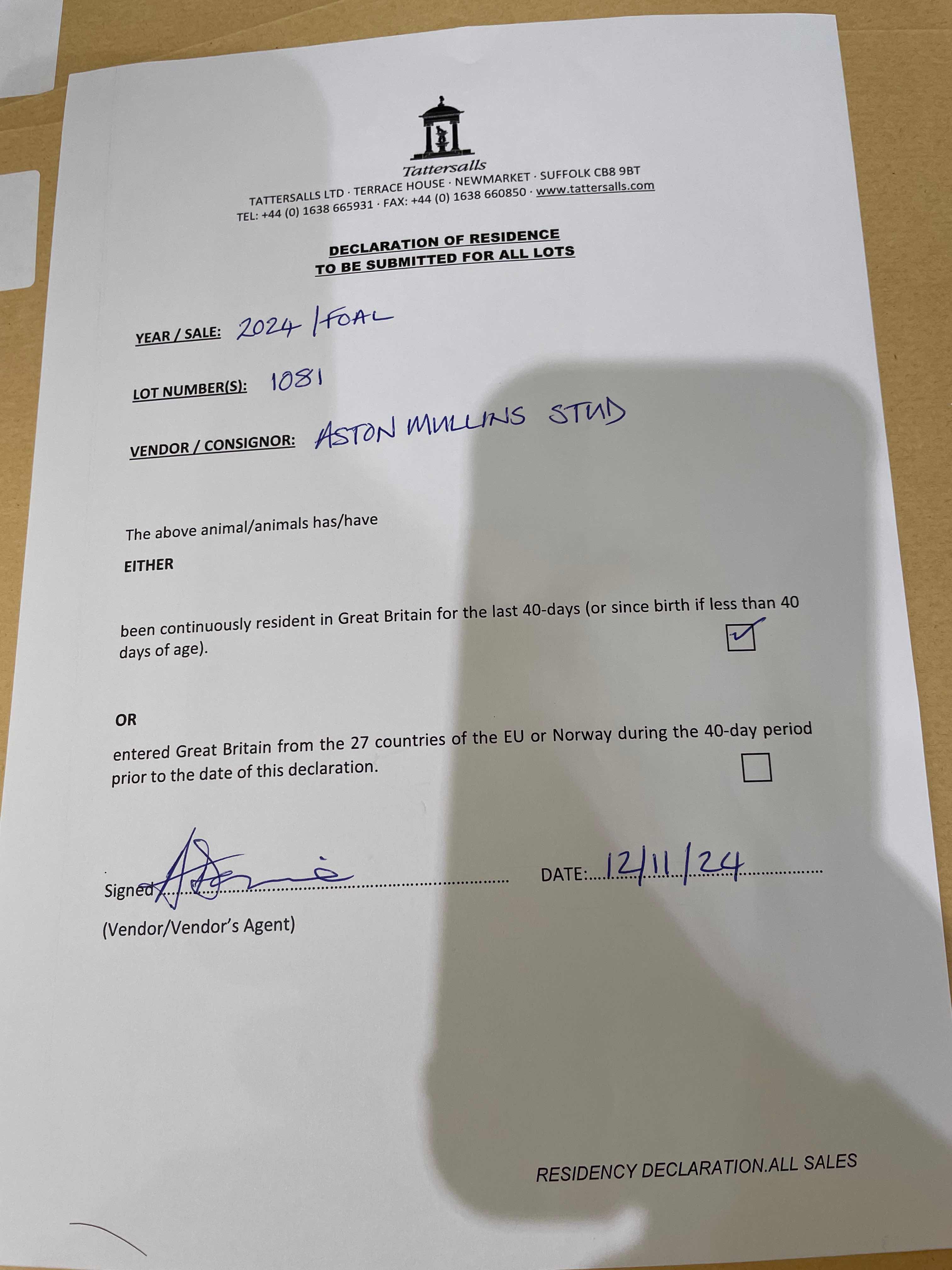 Lot 1081 Galileo Gold (GB) /Silver Cristal (USA) B.F. (GB)