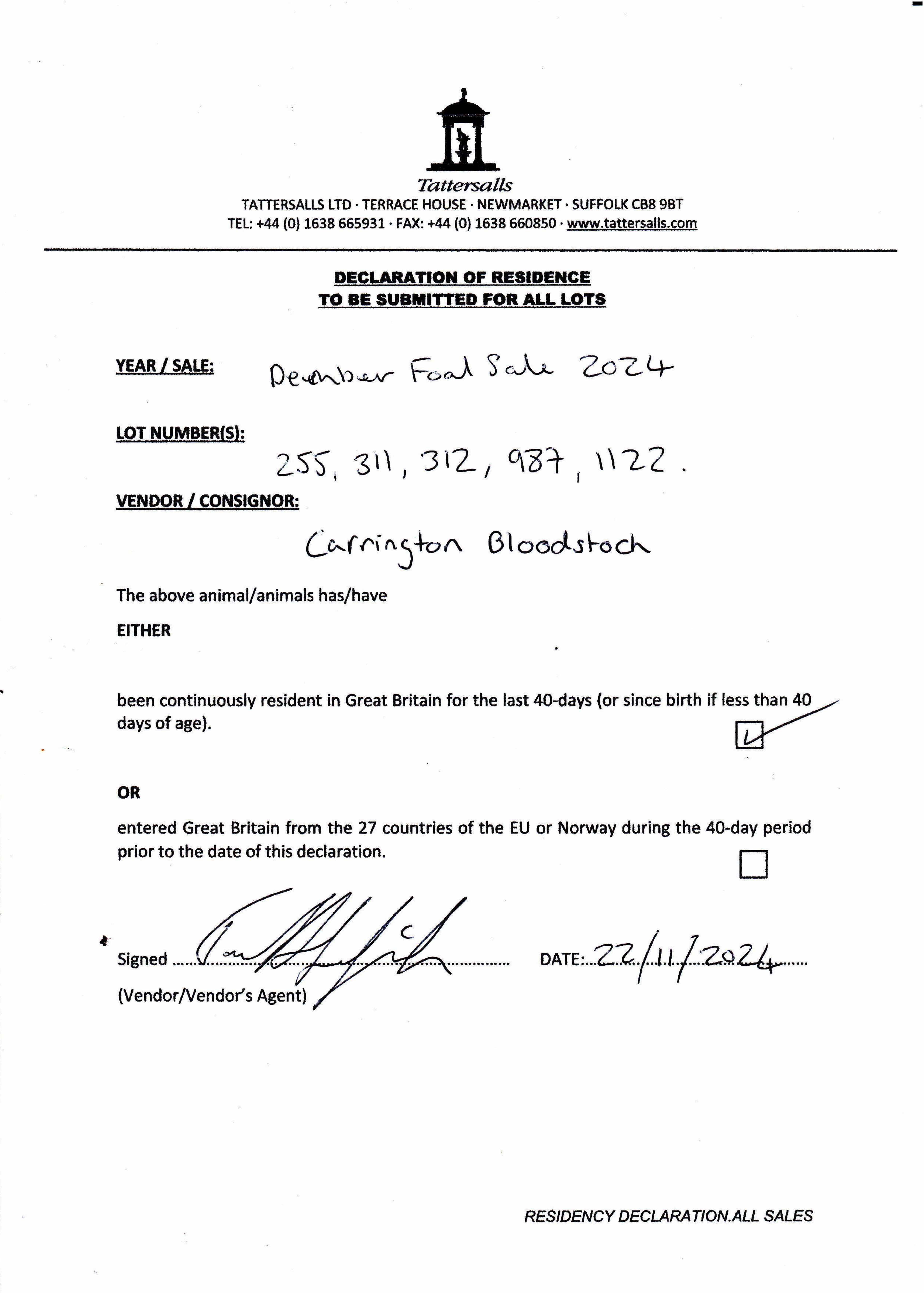 December Foal Sale 2022 lot 268 F. by Havana Gold (IRE) 2022, AMT Bloodstock=>Kingsfield Stud 10,000 gns