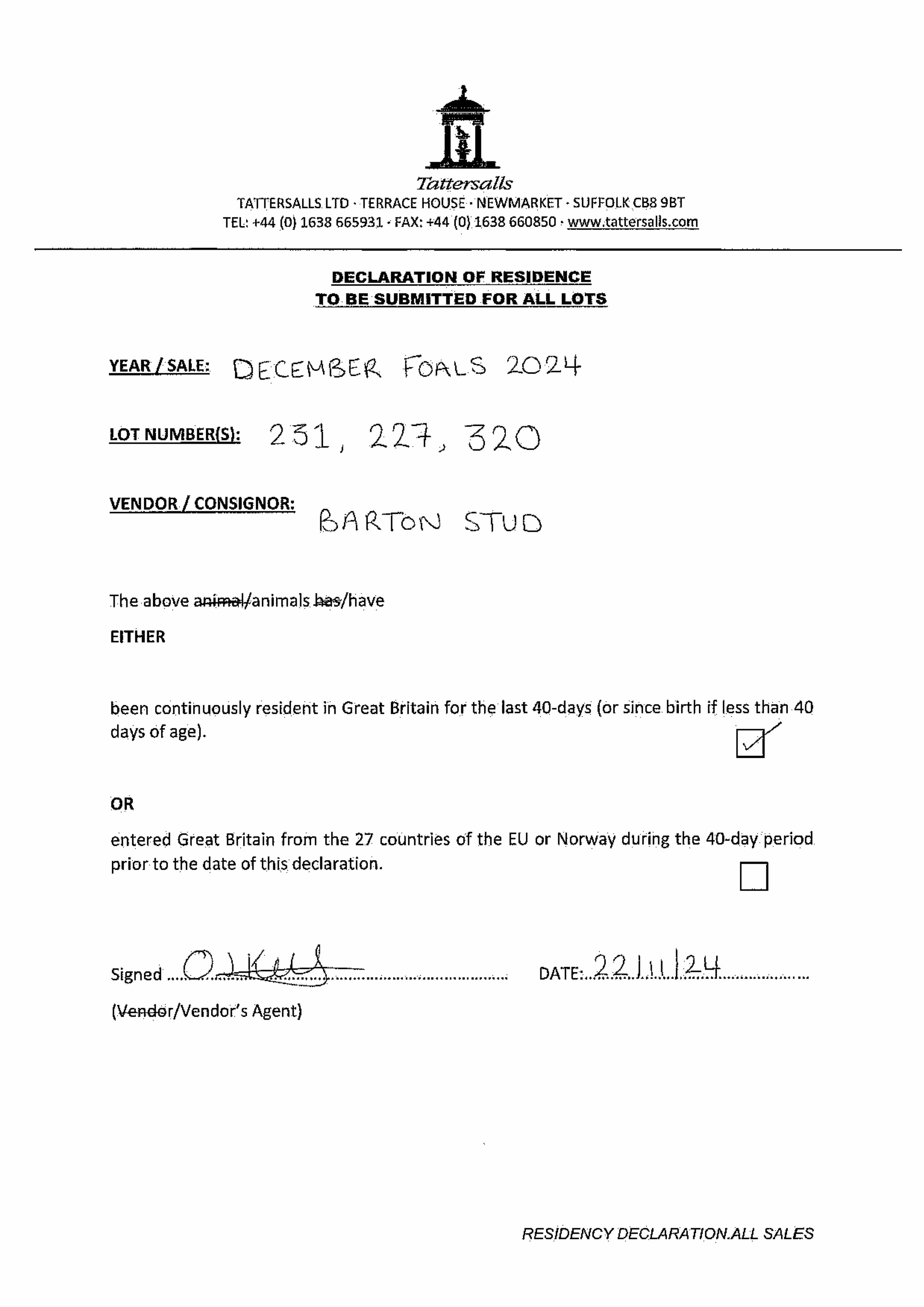 Consignor: Barton Stud