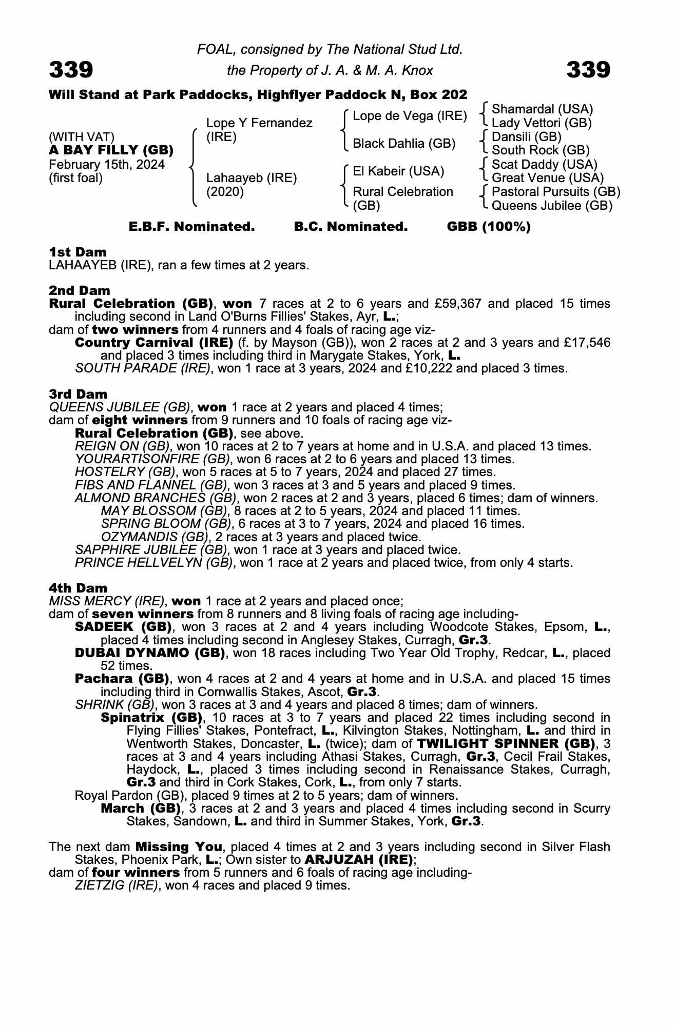 Consignor: The National Stud Ltd.