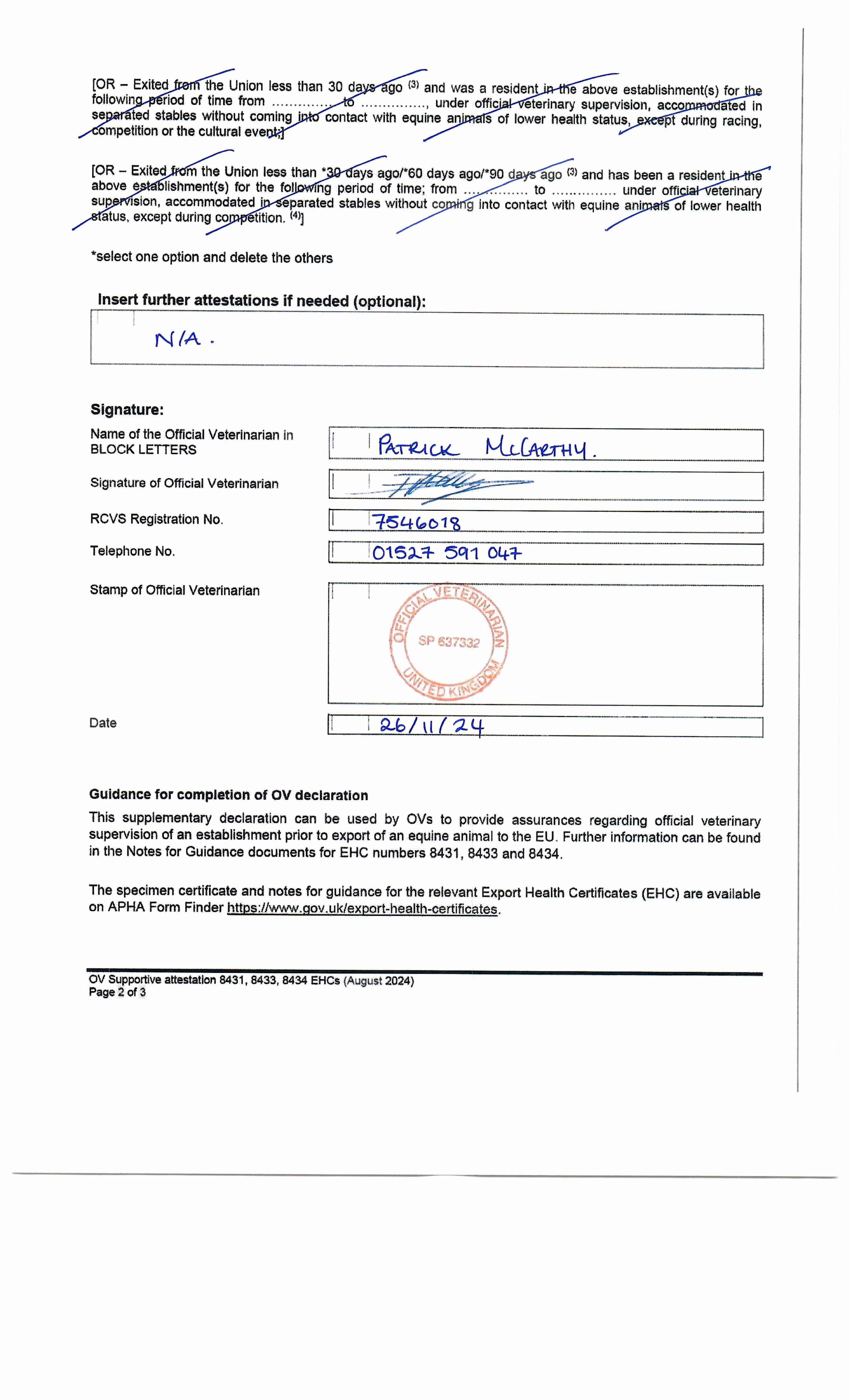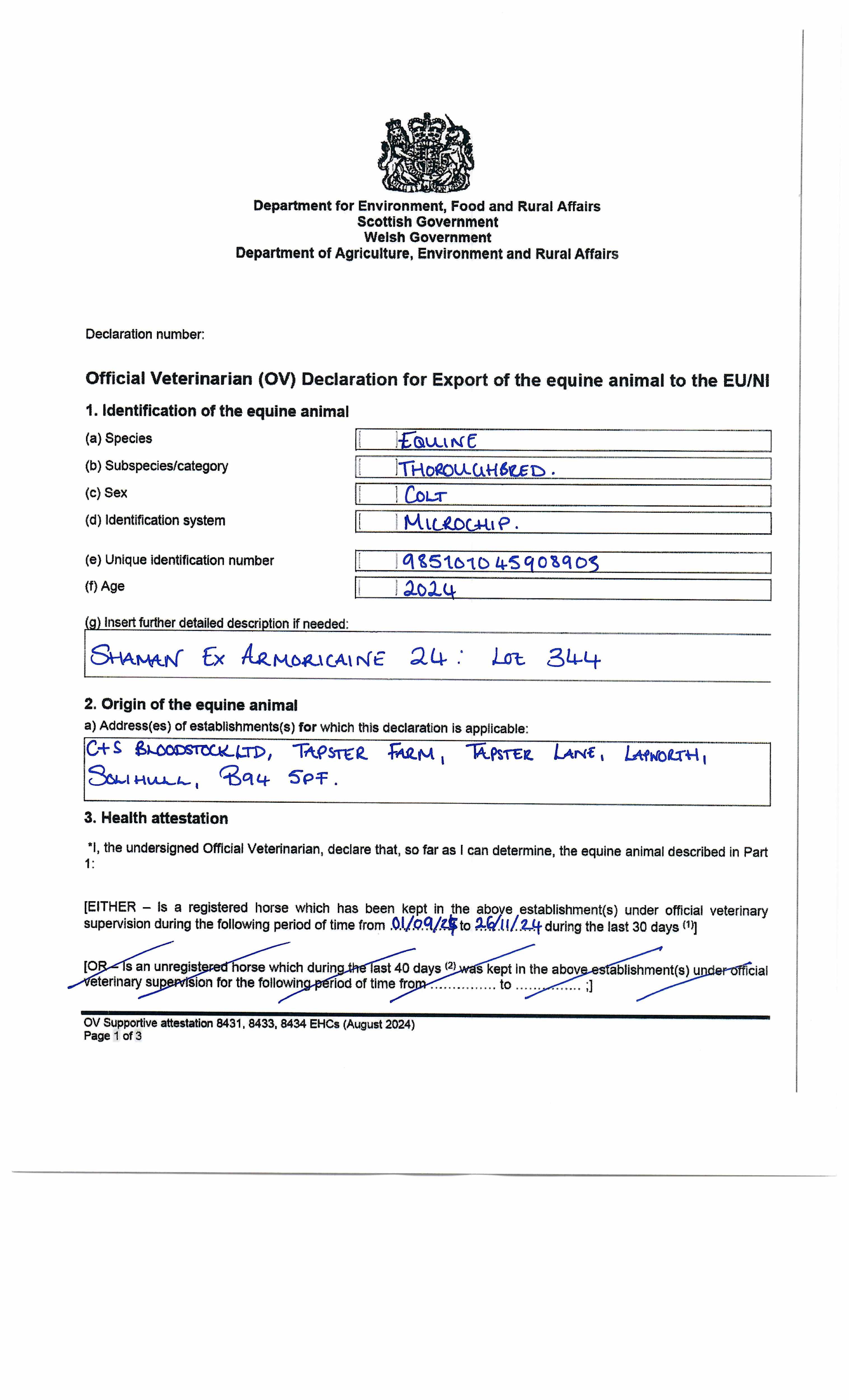 Official Veterinarian Declaration