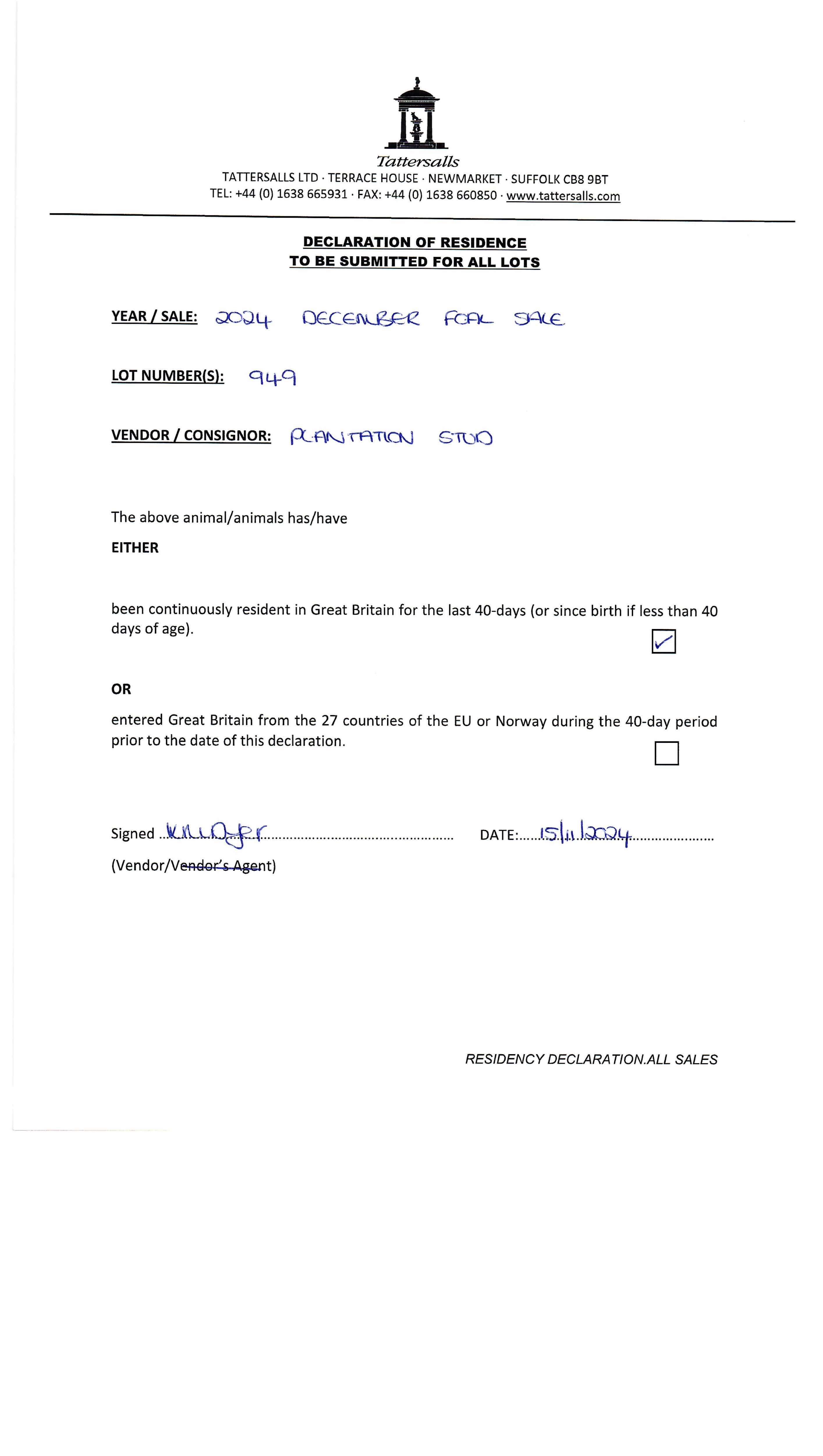 December Foal Sale 2023 lot 985 C. by Wootton Bassett (GB) 2023, Plantation Stud=>Sumbe 300,000 gns