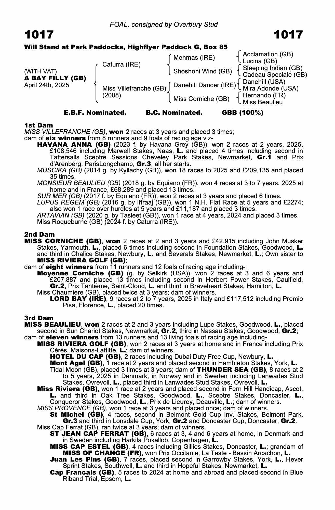Consignor: Overbury Stud