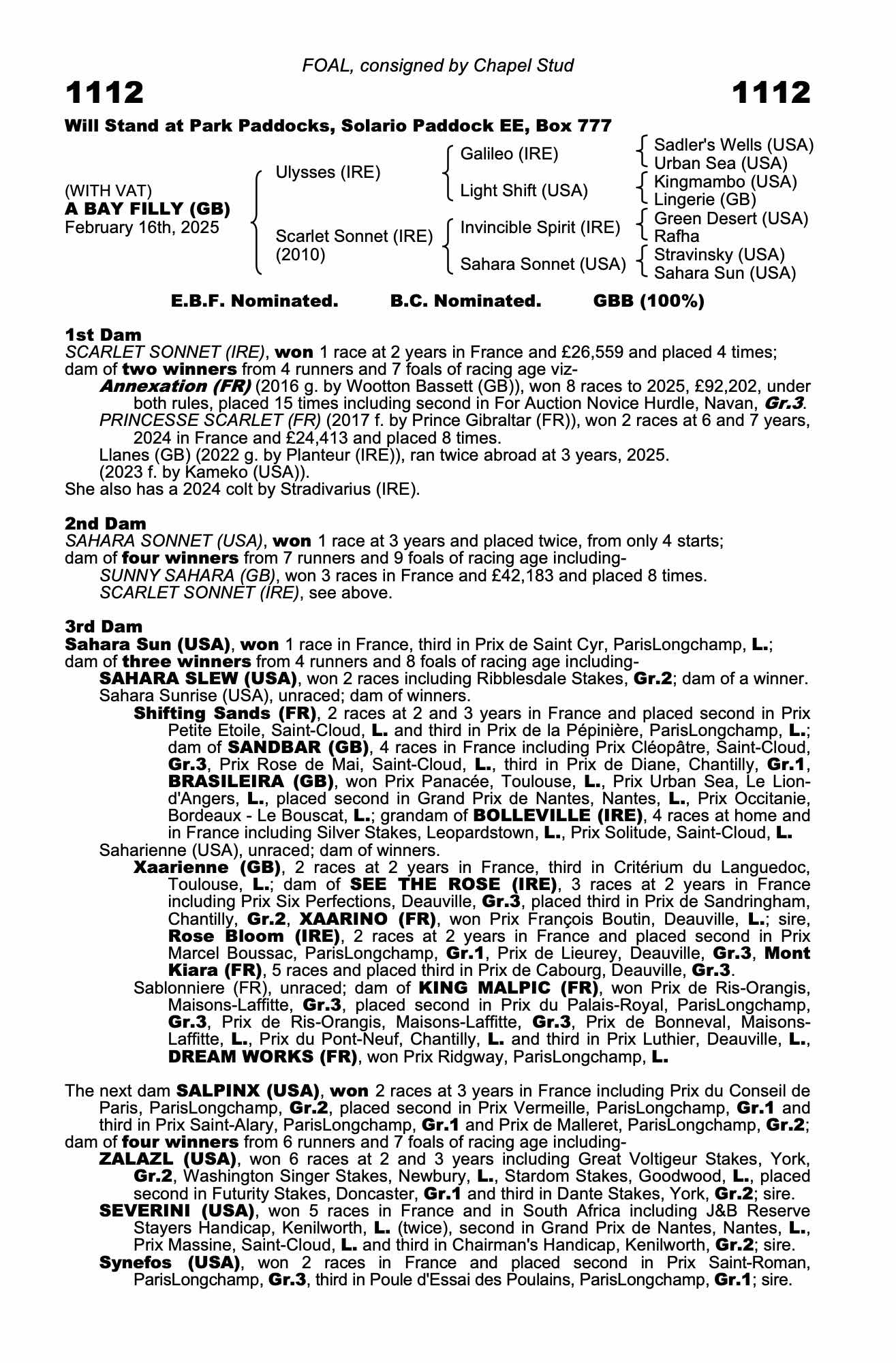 Consignor: Chapel Stud