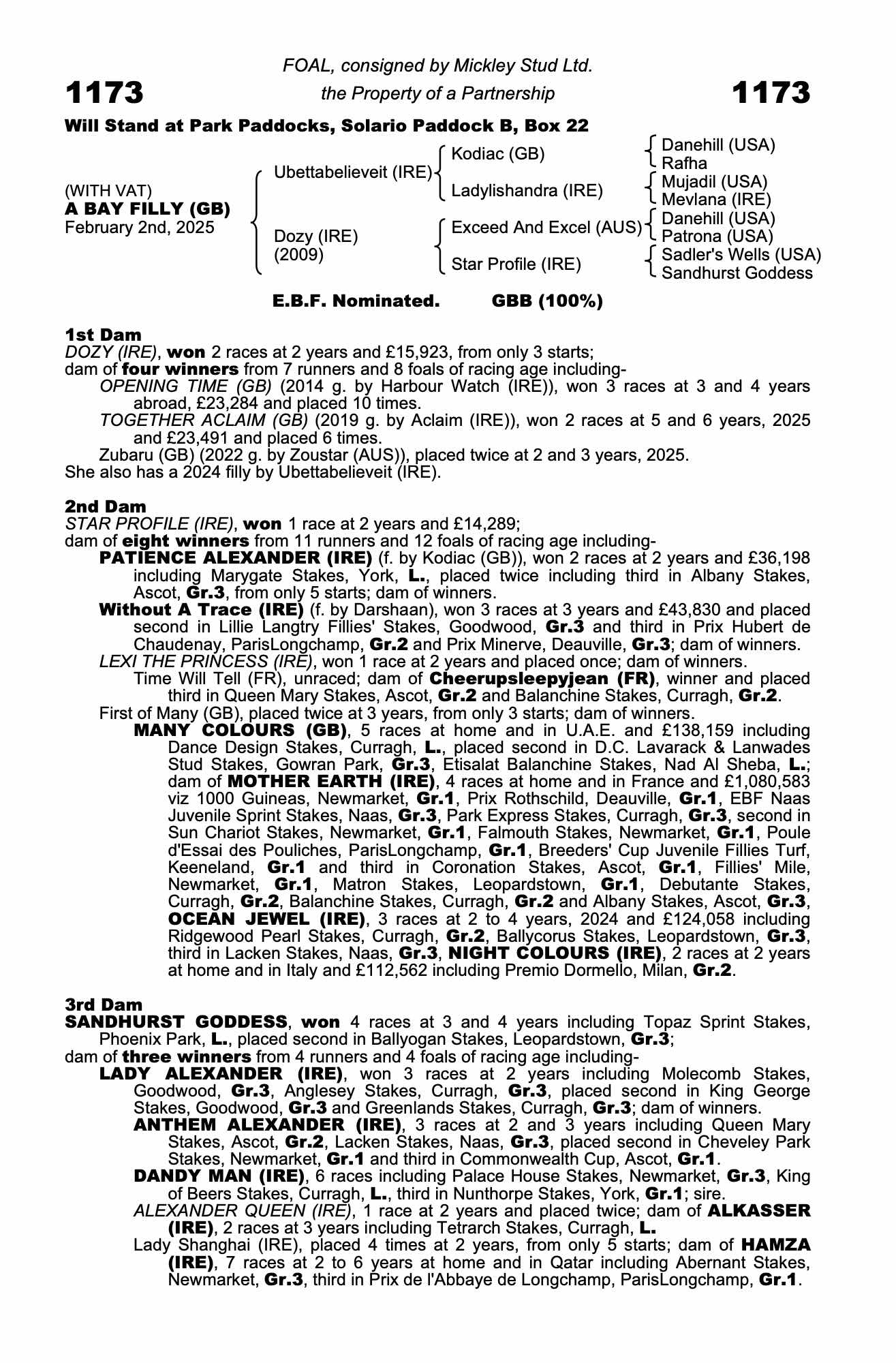 December Foal Sale 2024 lot 1187 F. 2024, Mickley Stud Ltd.=>Victoria Macauley 10,000 gns