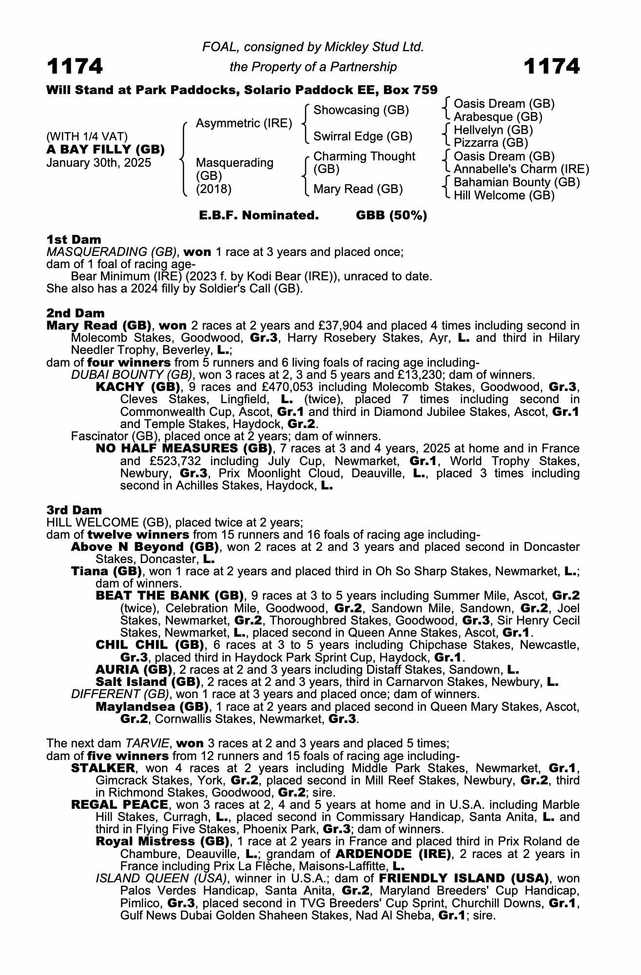 December Foal Sale 2024 lot 1021 F. by Soldier's Call (GB) 2024, Barton Stud=>Vendor 1,000 gns