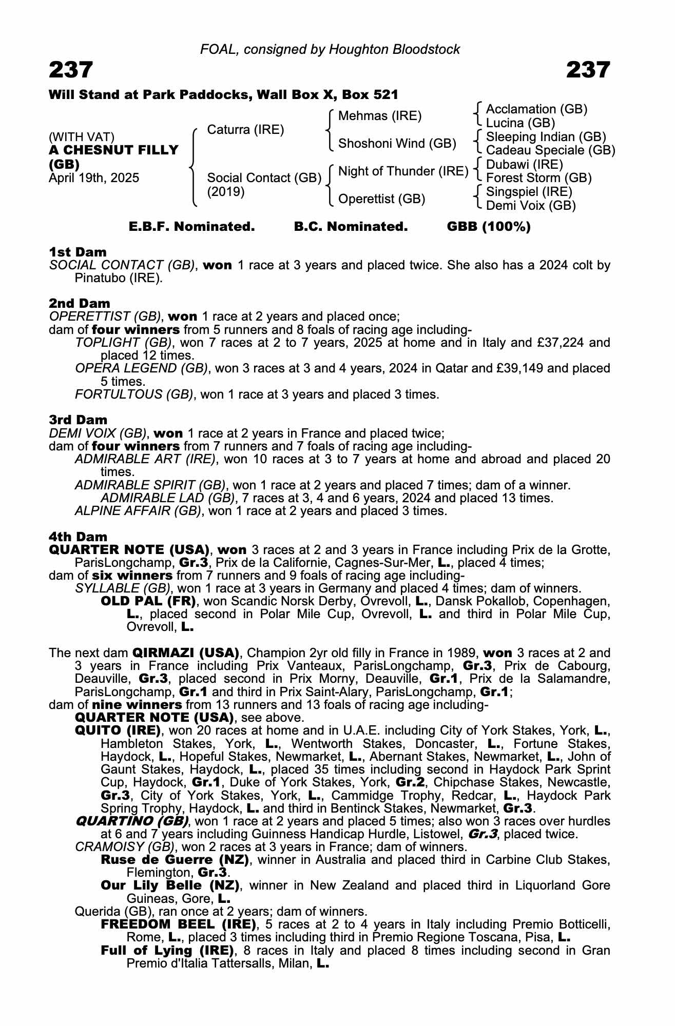2nd Dam OPERETTIST (GB); dam of CRACK OPS (GB) won 1 N.H. Flat Race at 3 years, 2025 and placed once from only 2 starts.
