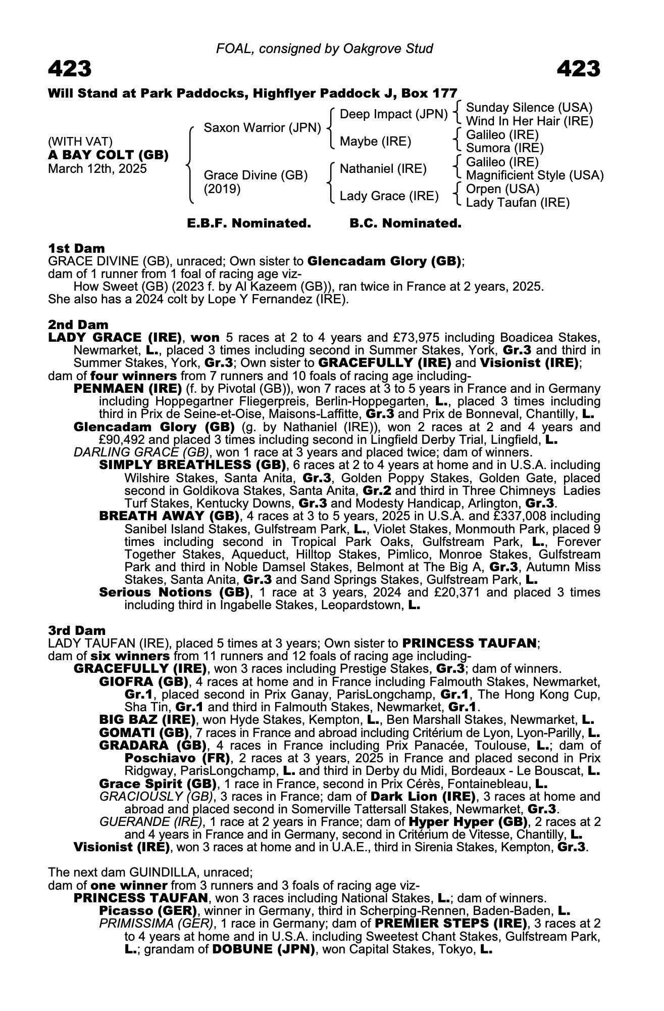 Lot 423 Saxon Warrior (JPN) /Grace Divine (GB) B.C. (GB)