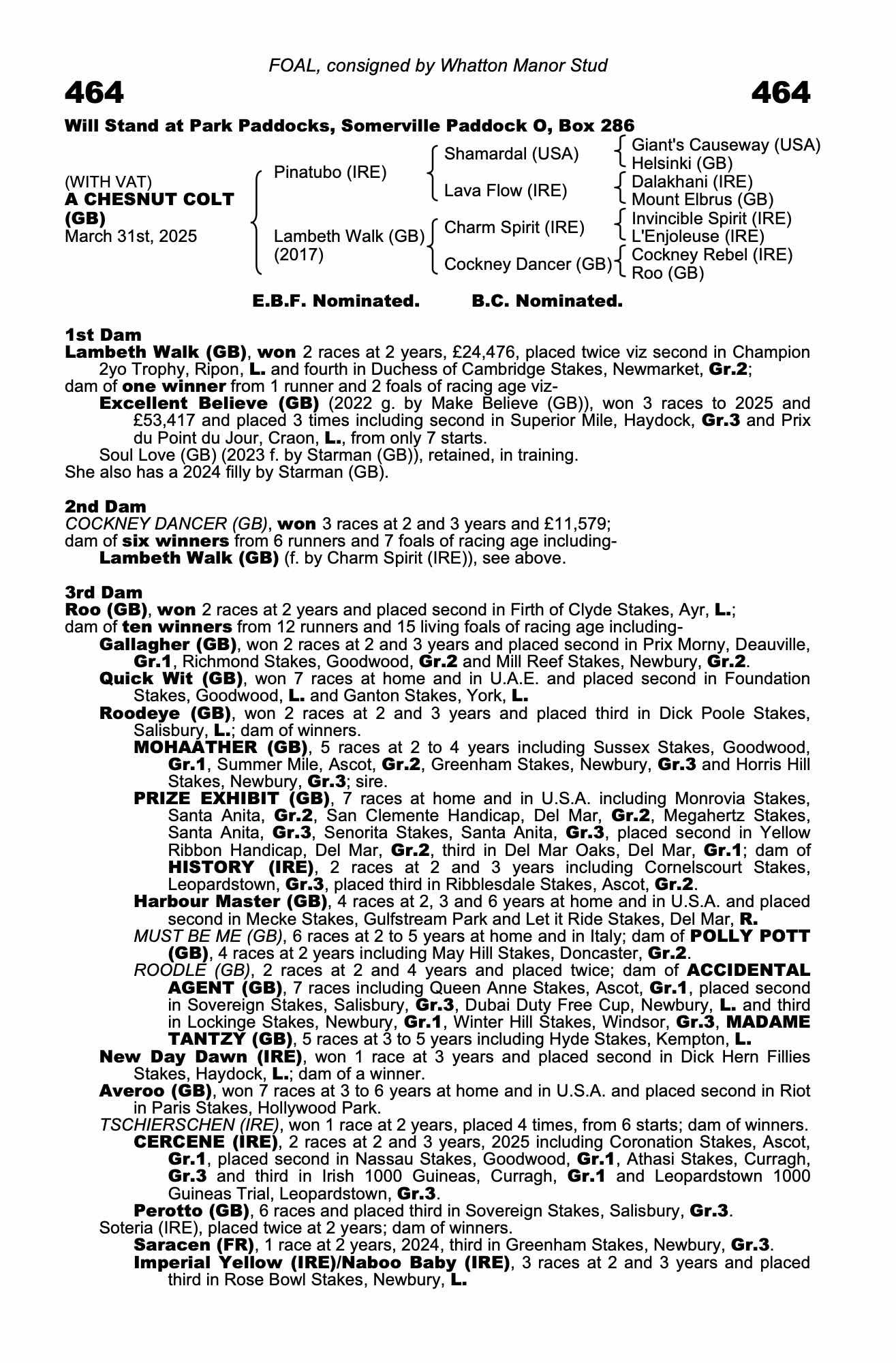 Consignor: Whatton Manor Stud