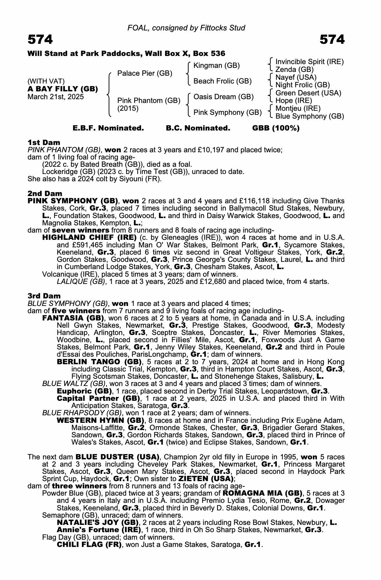 Lot 574 Palace Pier (GB) /Pink Phantom (GB) B.F. (GB)