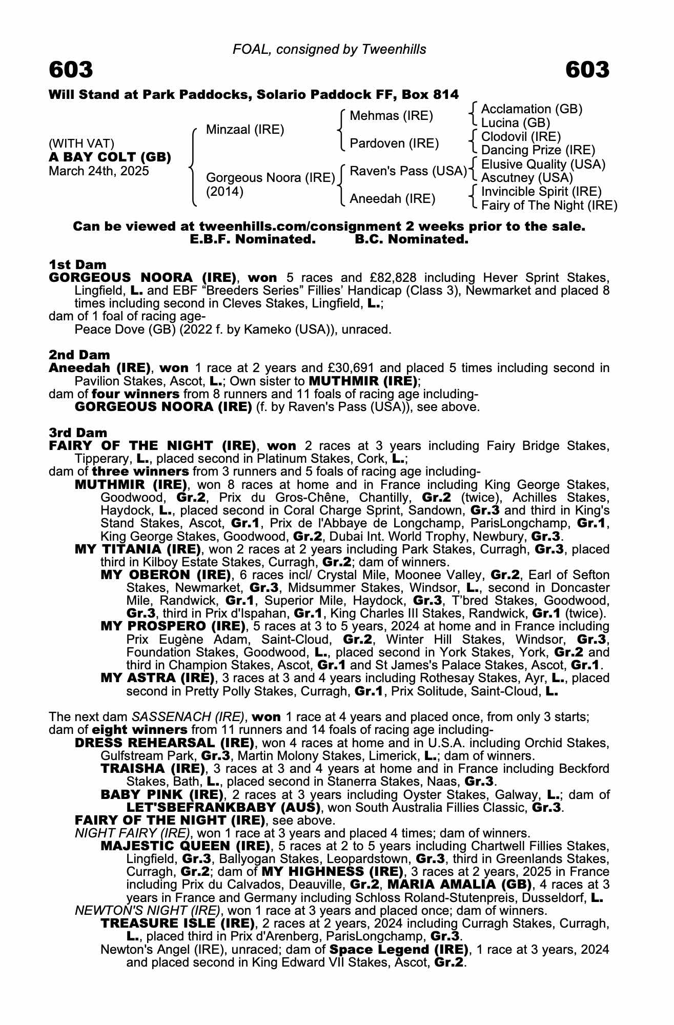 Online Sale - 19th September 2024 lot 116 Peace Dove (GB) (F. by Kameko (USA)), Tweenhills Farm & Stud=>Paere Dansk Ltd 2,000 gns