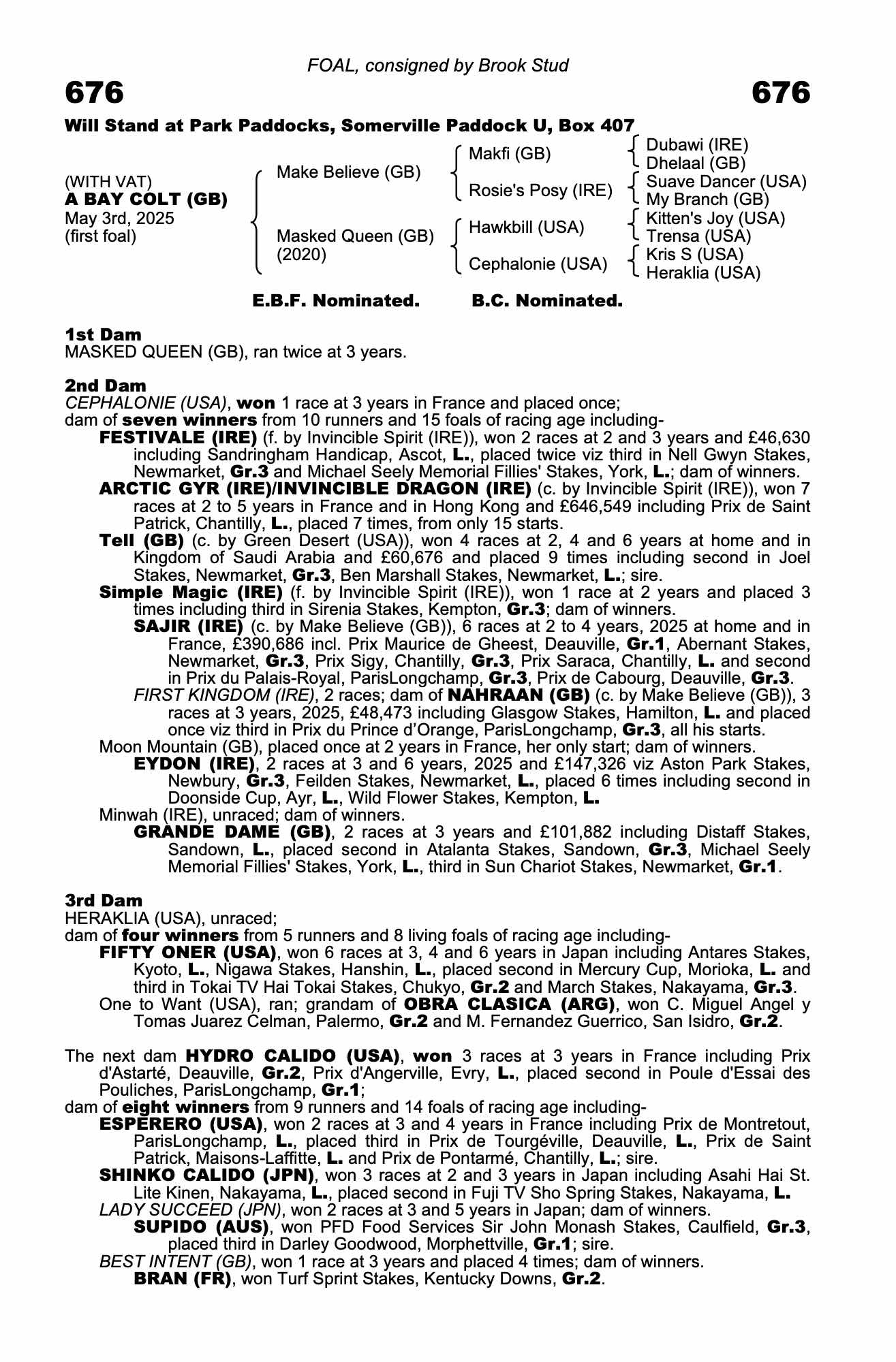 Lot 676 Make Believe (GB) /Masked Queen (GB) B.C. (GB)