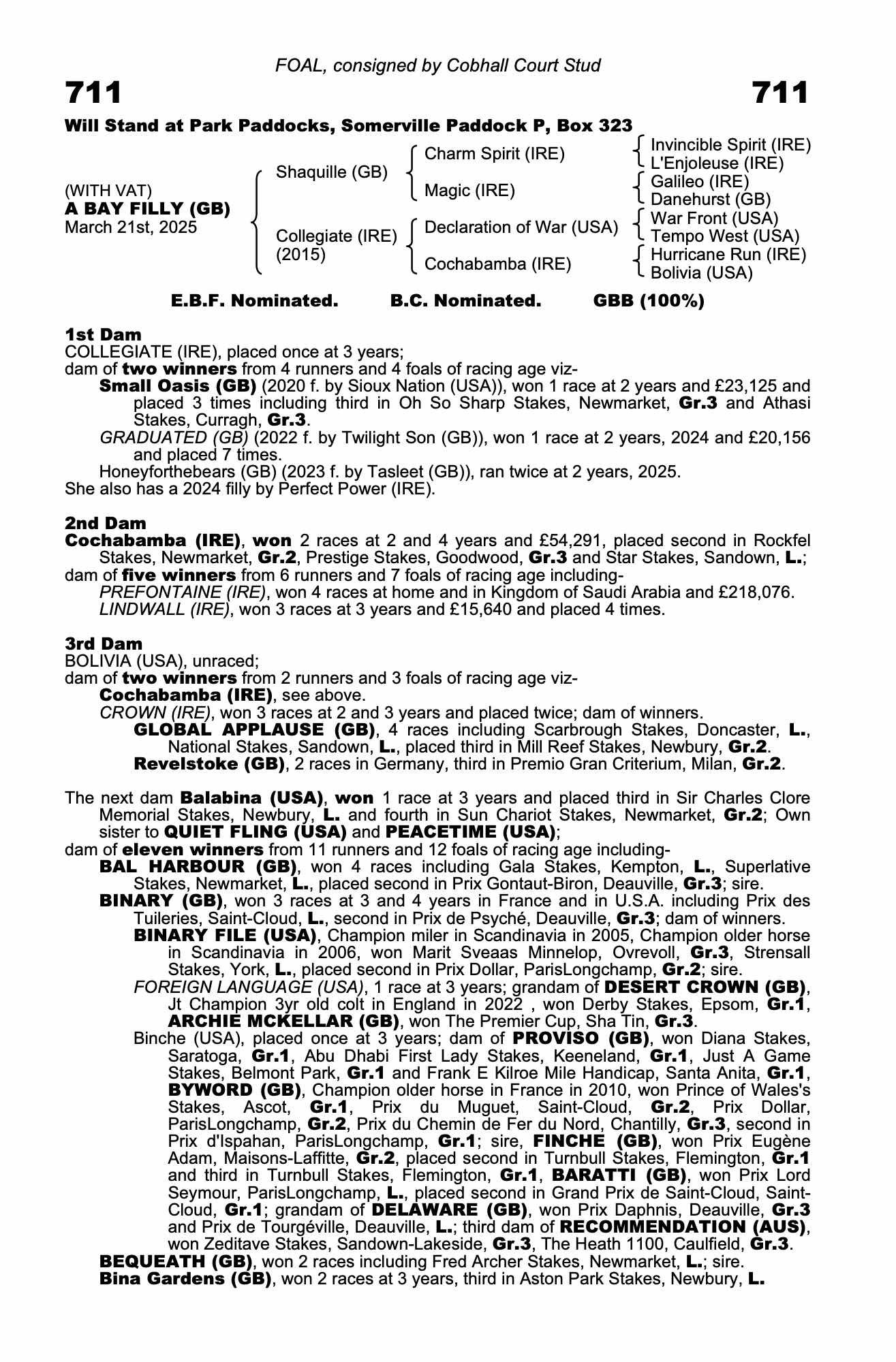 Somerville Yearling Sale 2021 lot 233 F. by Sioux Nation (USA) 2020, Cobhall Court Stud=>Lot Not Sold 2,500 gns