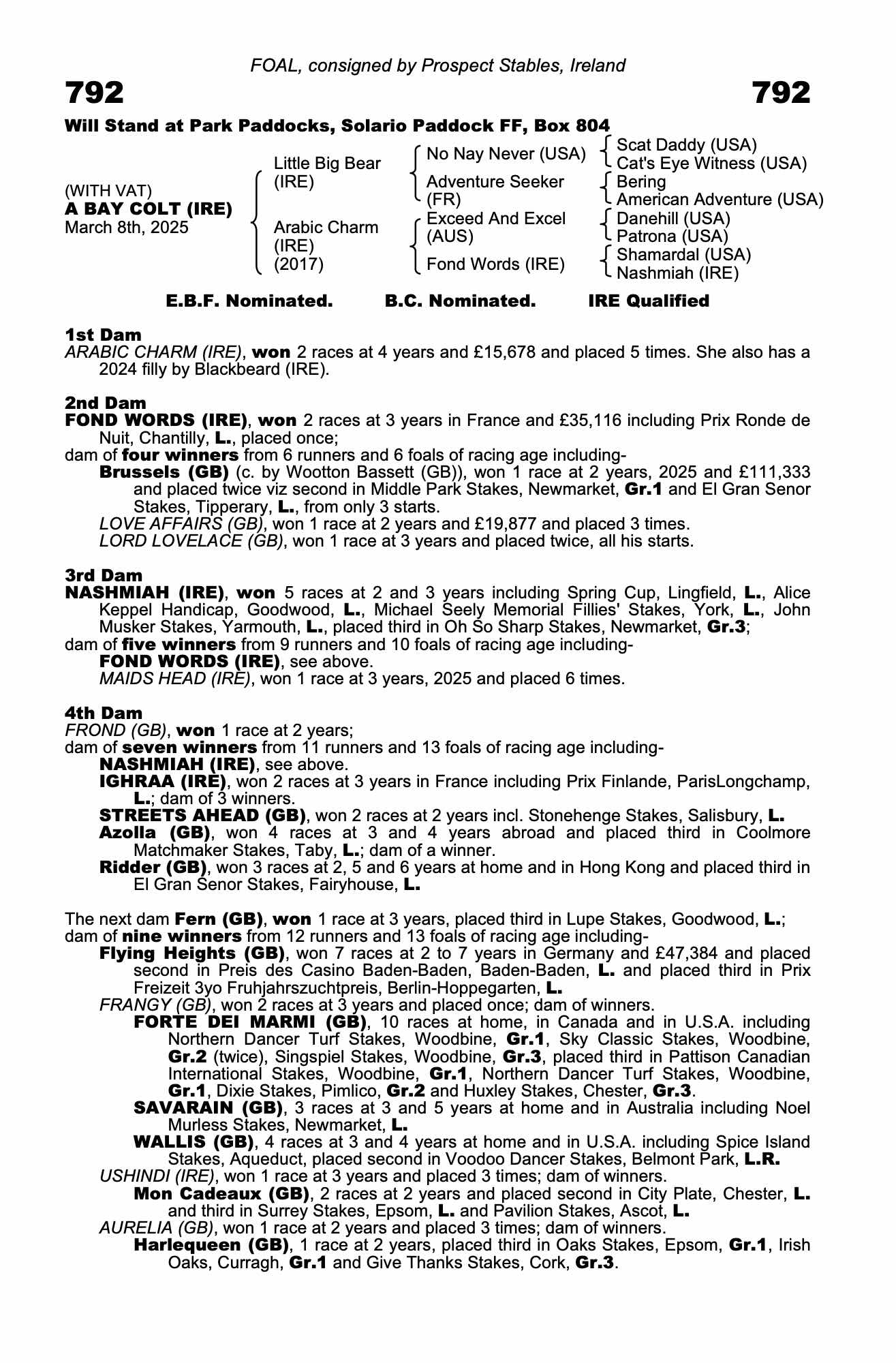 Lot 792 Little Big Bear (IRE) /Arabic Charm (IRE) B.C. (IRE)