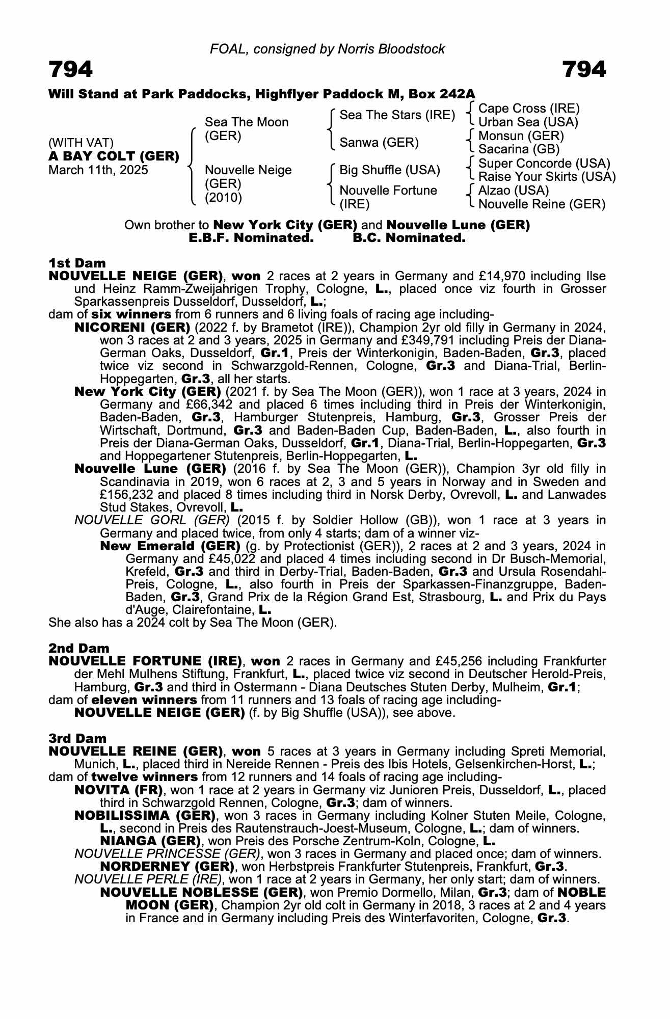 Lot 794 Sea The Moon (GER) /Nouvelle Neige (GER) B.C. (GNY)