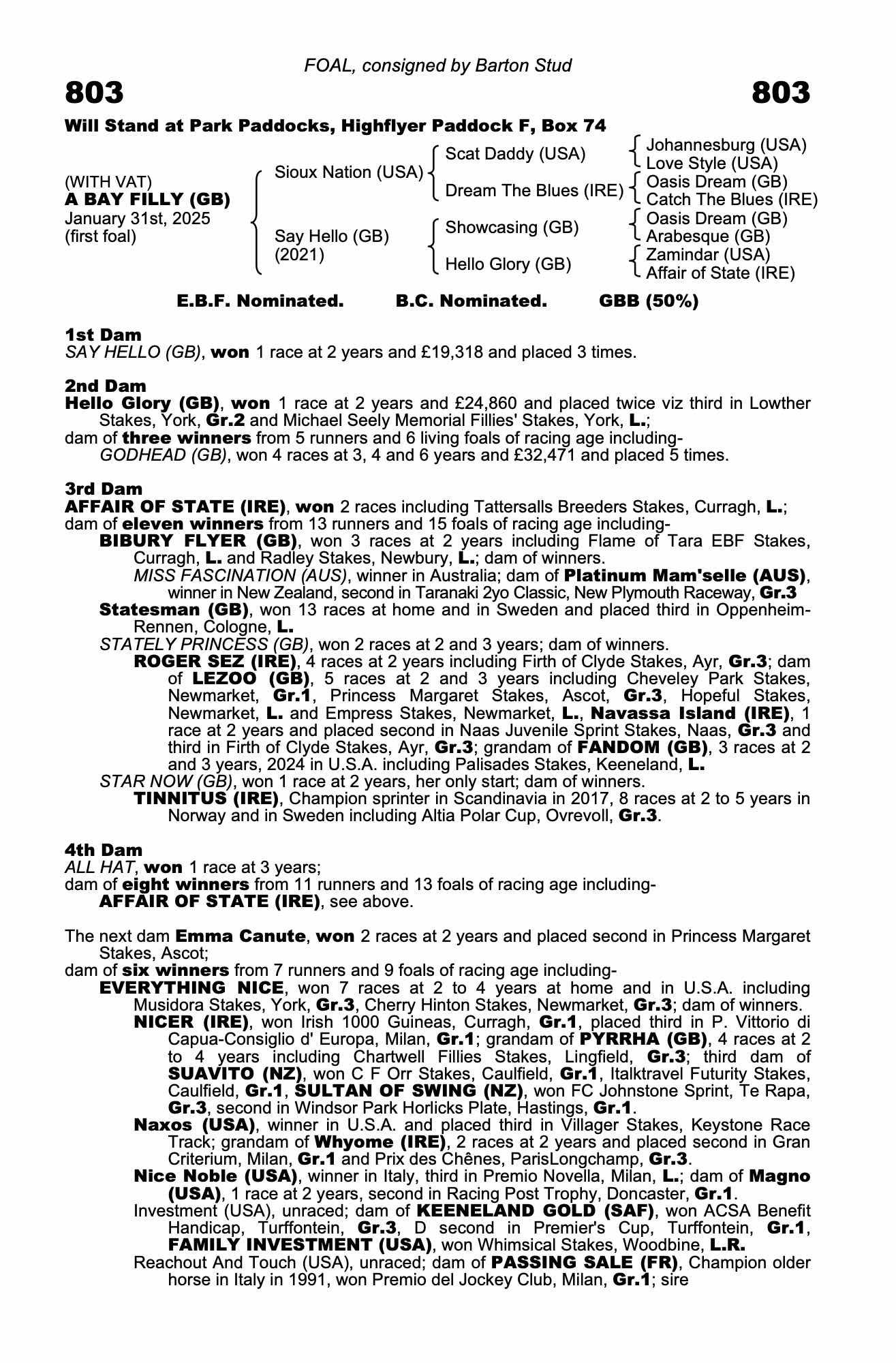 Under 3rd dam, STATELY PRINCESS (GB), dam of ROGER SEZ (IRE): ; dam of Navassa Island (IRE), placed 7 times including second in Prix de Seine-et-Oise, Chantilly, Gr.3 and Brigid's Pasture Stakes, Curragh, L..