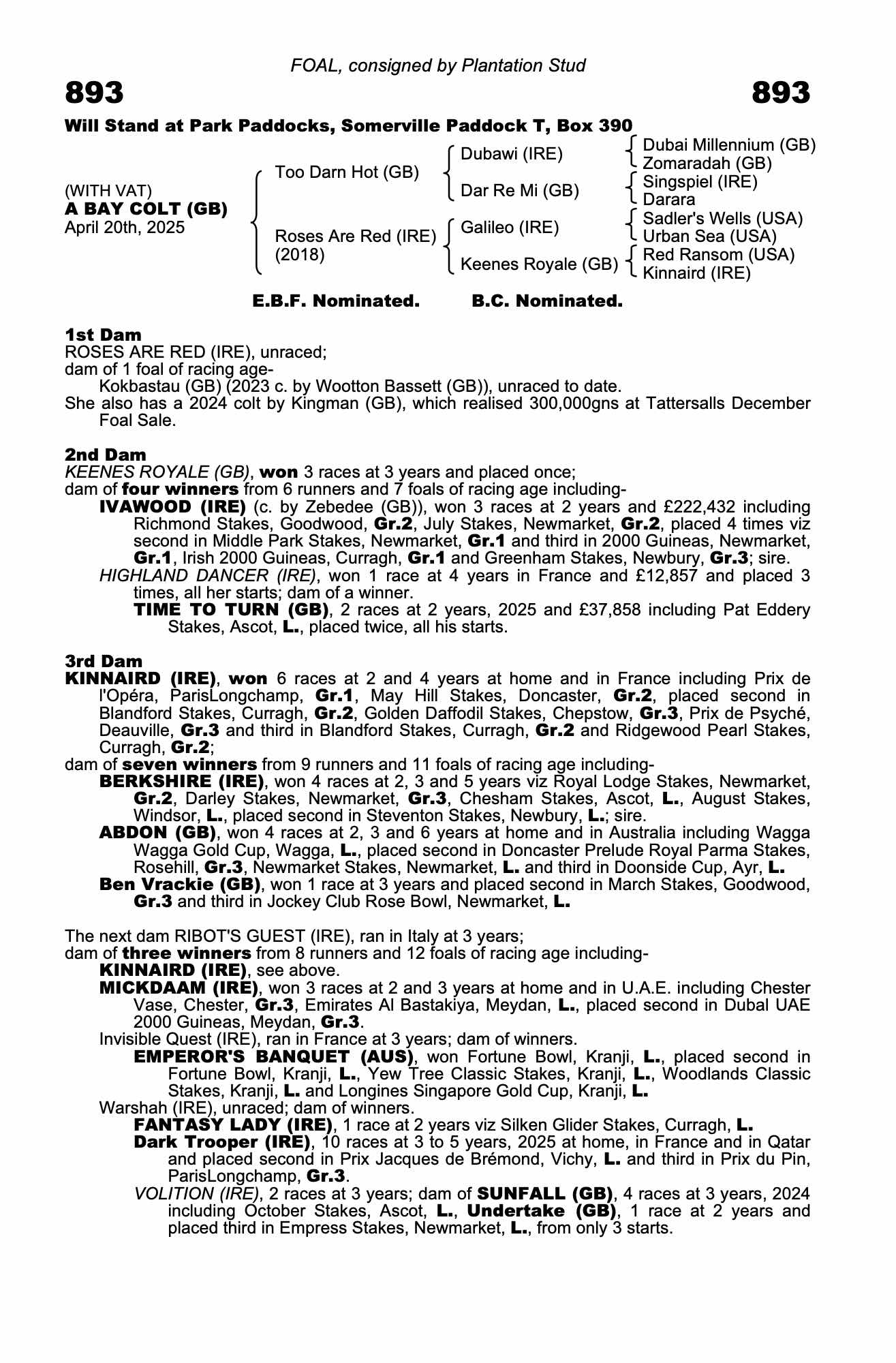 Lot 893 Too Darn Hot (GB) /Roses Are Red (IRE) B.C. (GB)