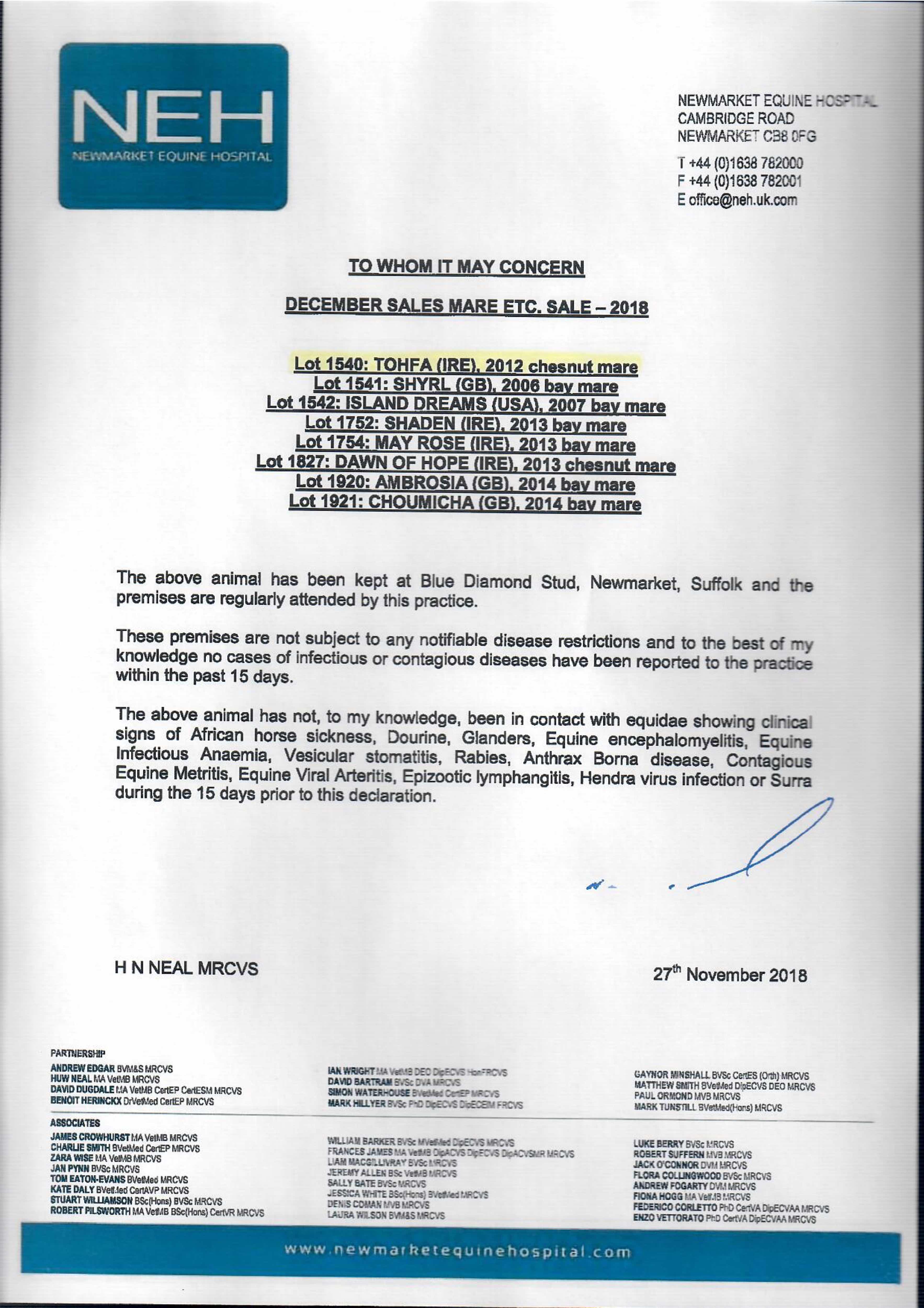 Consignor: Highclere Stud