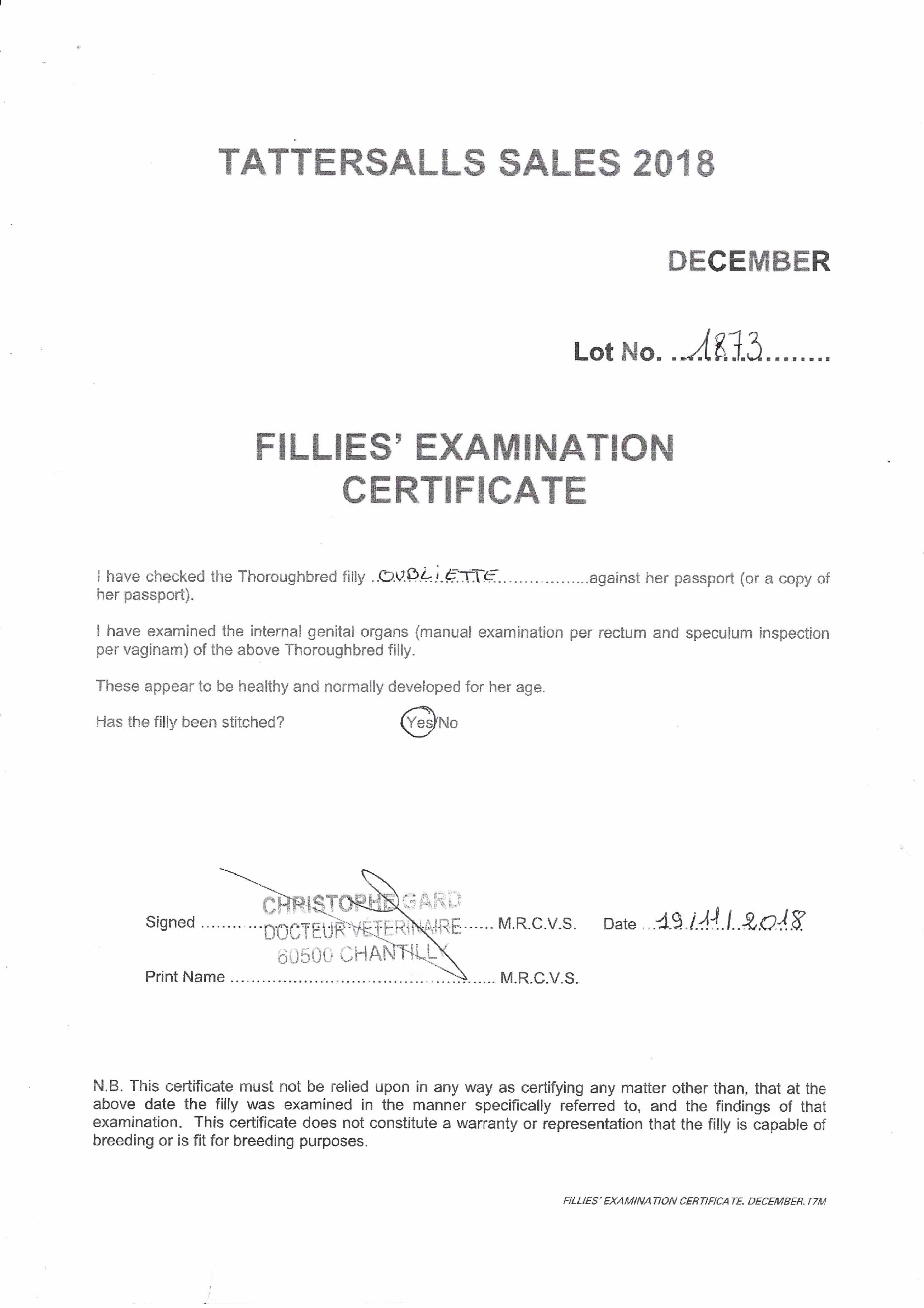 December Foal Sale 2003 lot 902 F. by Machiavellian (USA) 2003, Knocktoran Stud, Ireland=>Vendor 110,000 gns