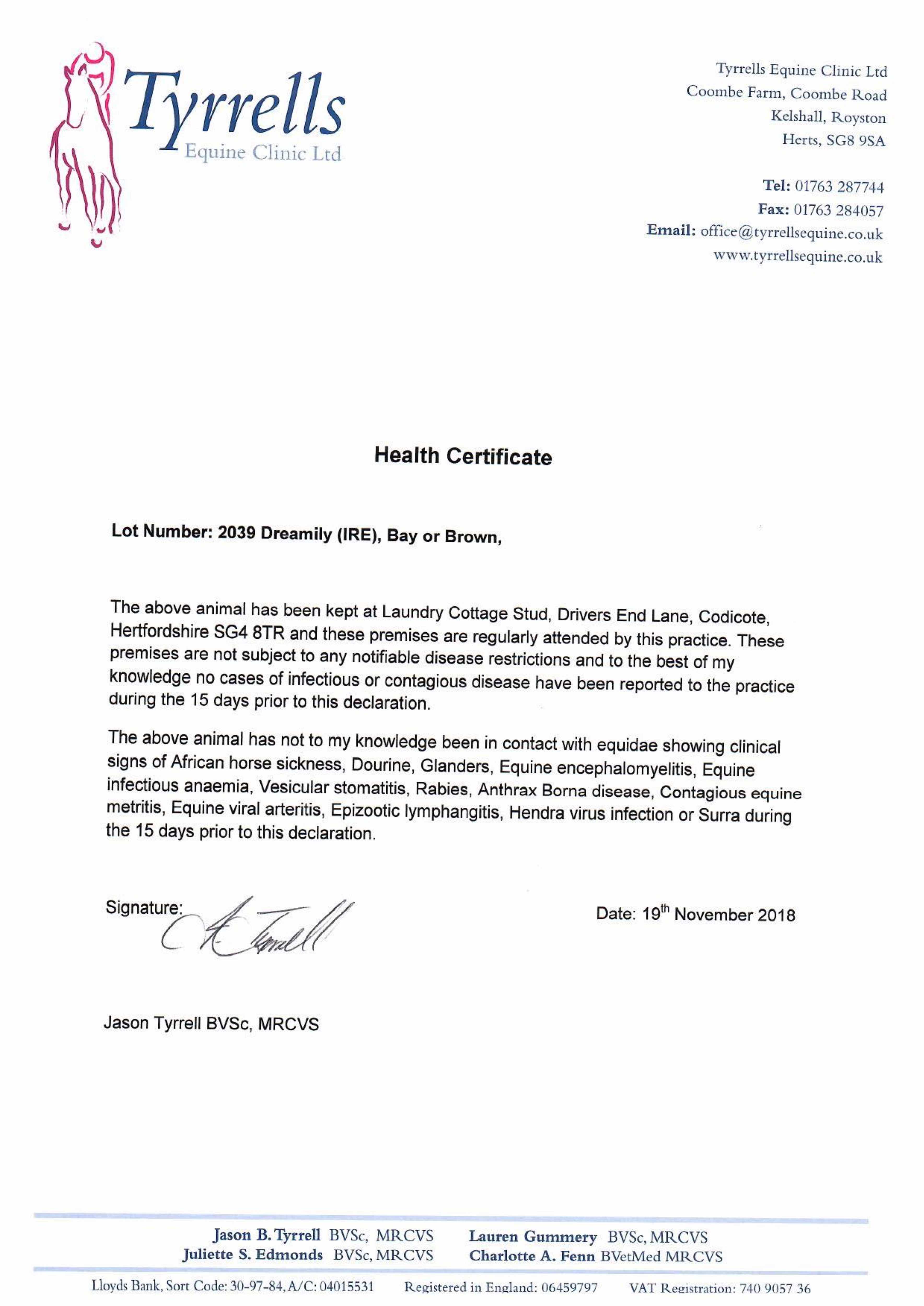 December Foal Sale 2018 lot 461 F. by Bobby's Kitten (USA) 2018, Laundry Cottage Stud Farm=>Torben Christensen 1,000 gns