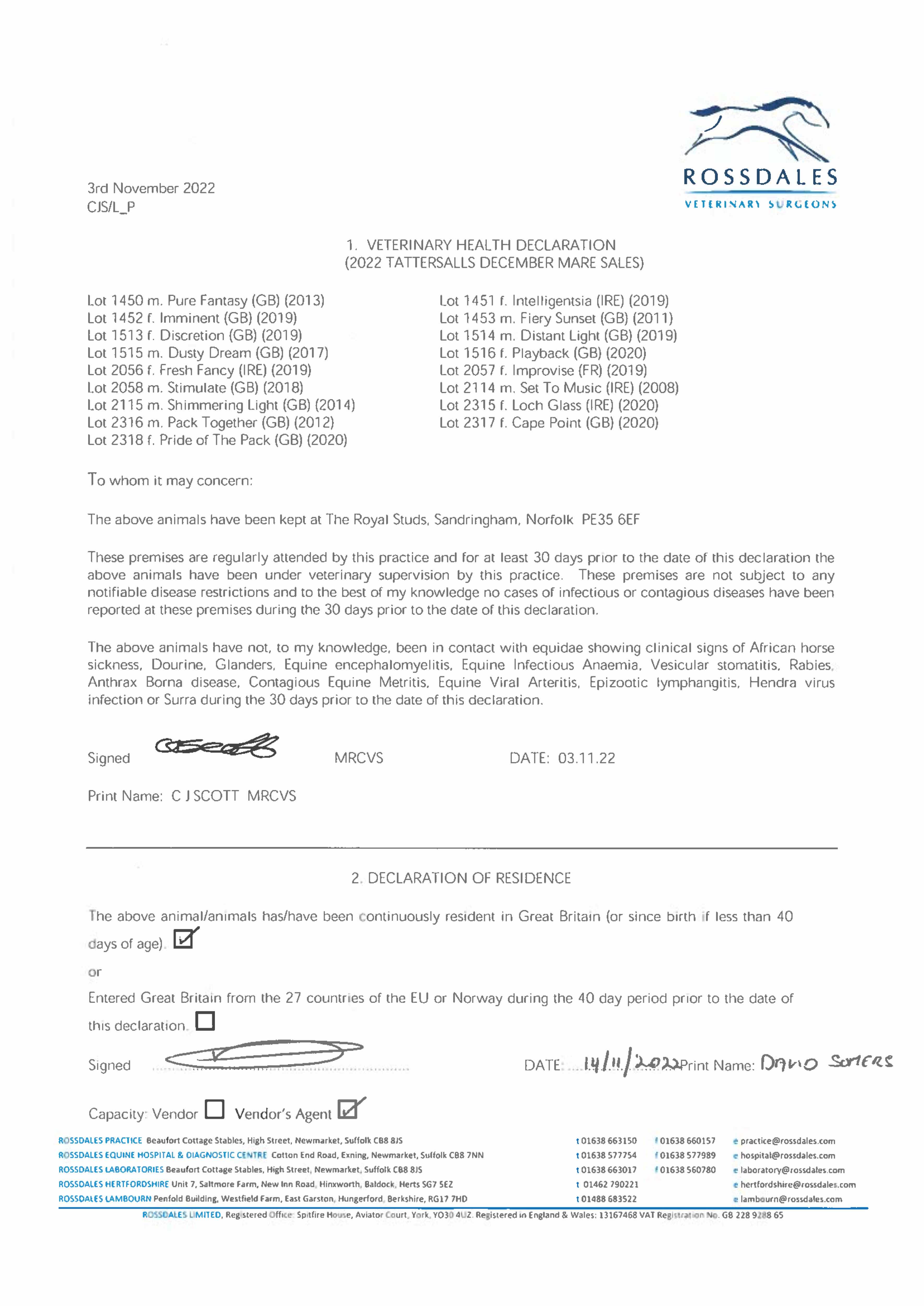 Contact: David Somers ✆ 01485 540588 ✉ office@theroyalstuds.co.uk