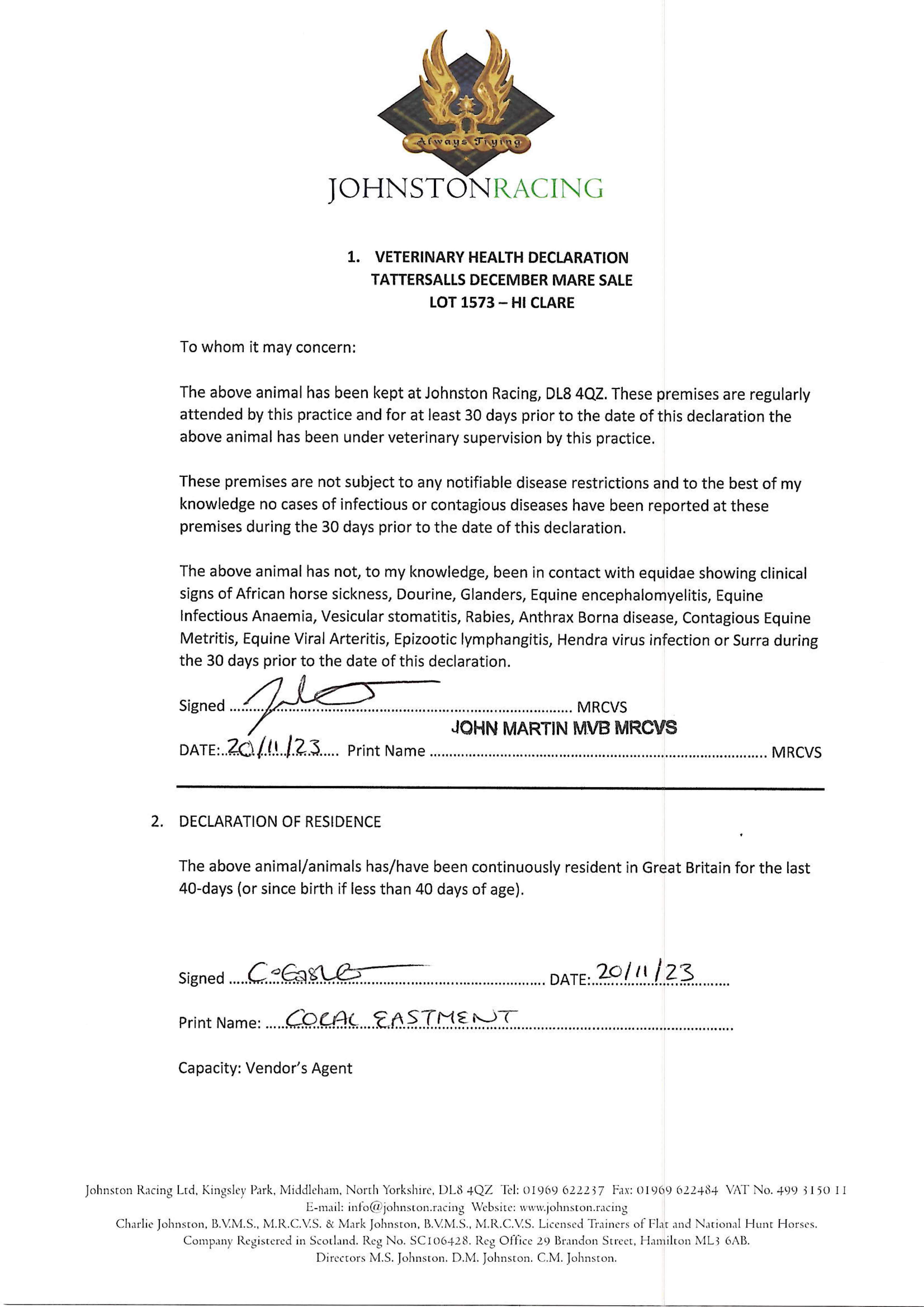 Consignor: Kingsley Park