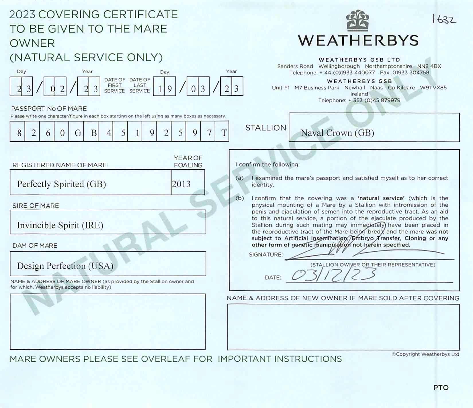 Consignor: Meon Valley Stud