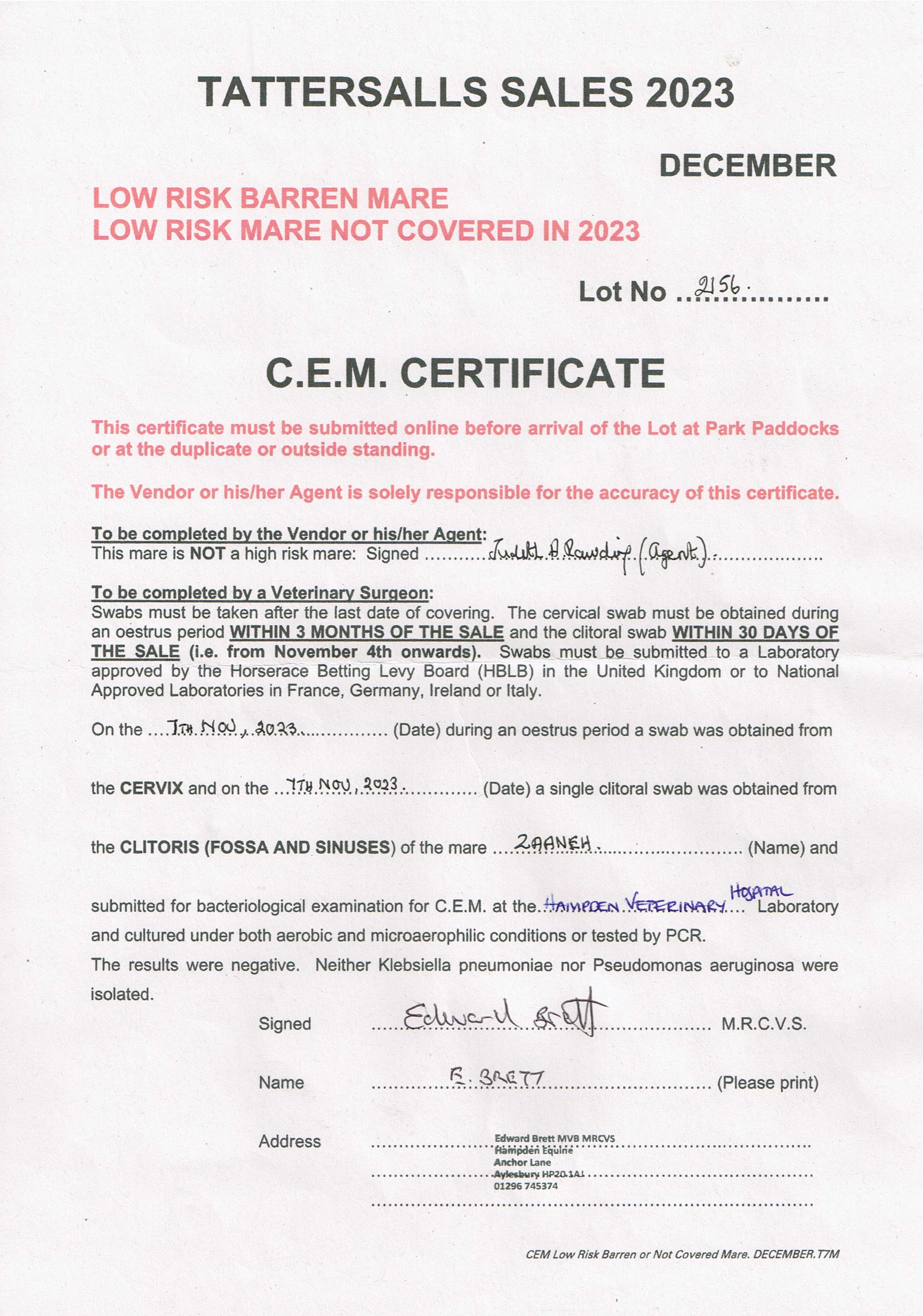 December Mare Sale 2024 lot 2117 Heartbreaker (GB) (M. by Cable Bay (IRE)), Whatton Manor Stud=>Dehasa Milagro 2,000 gns
