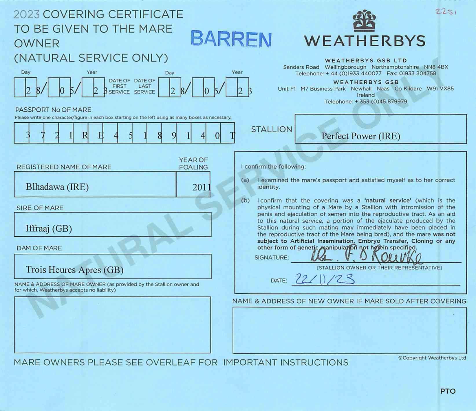 July Sale 2011 lot 729 Carsulae (IRE) (F. by Marju (IRE)), Bedford House Stables (L. Cumani)=>Lot Not Sold