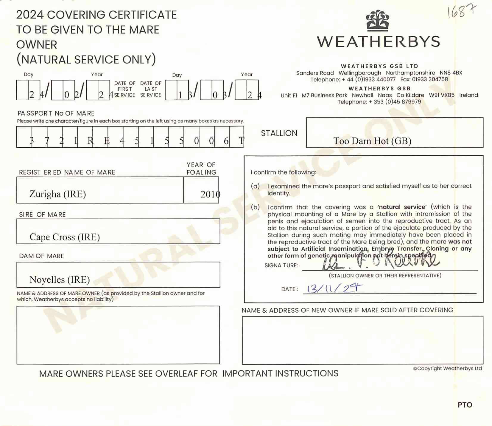 December Mare Sale 2024 lot 1632 Furious (GB) (M. by Oasis Dream (GB)), Tweenhills Farm & Stud=>Oakgrove Stud 110,000 gns