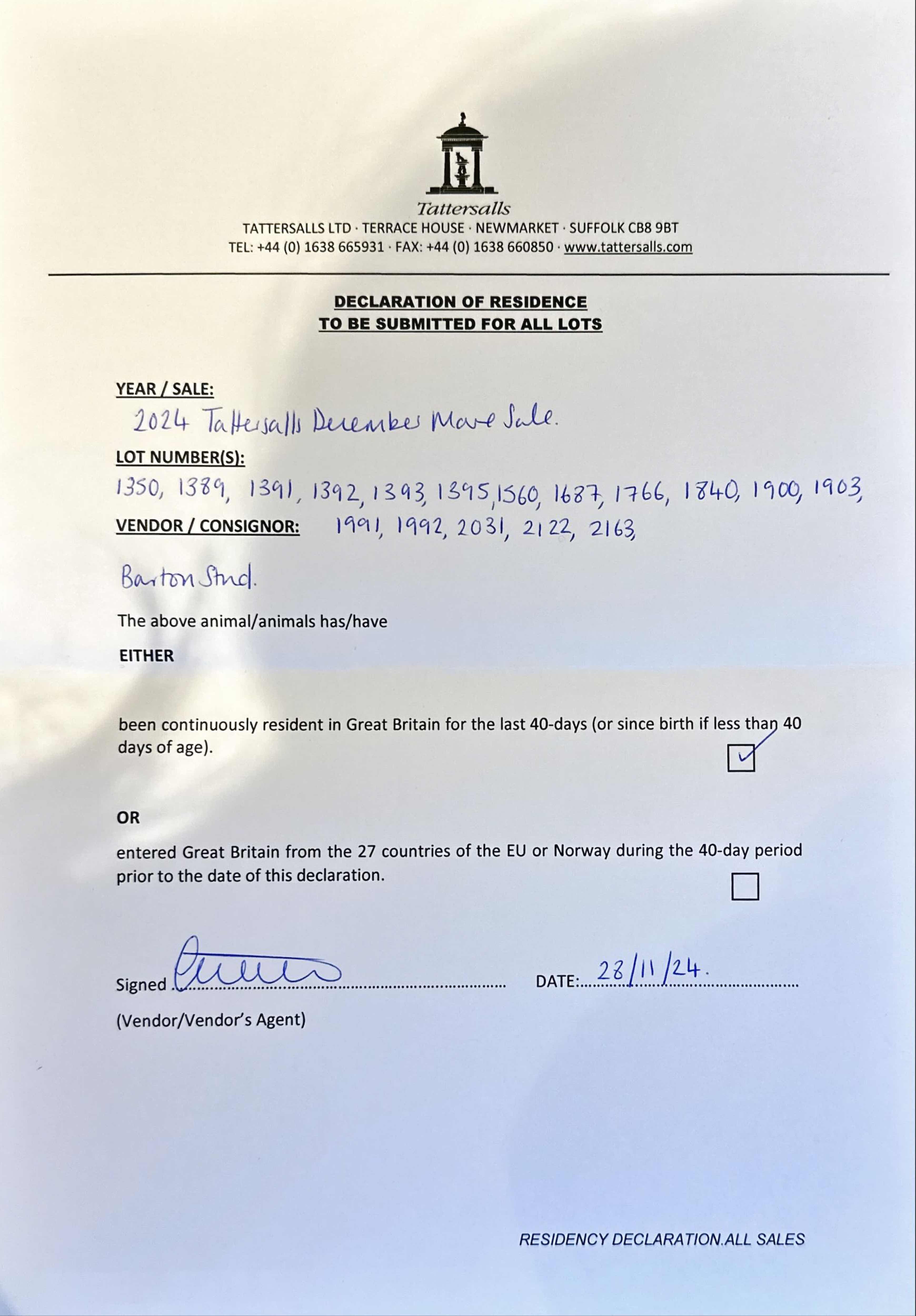 Consignor: Barton Sales