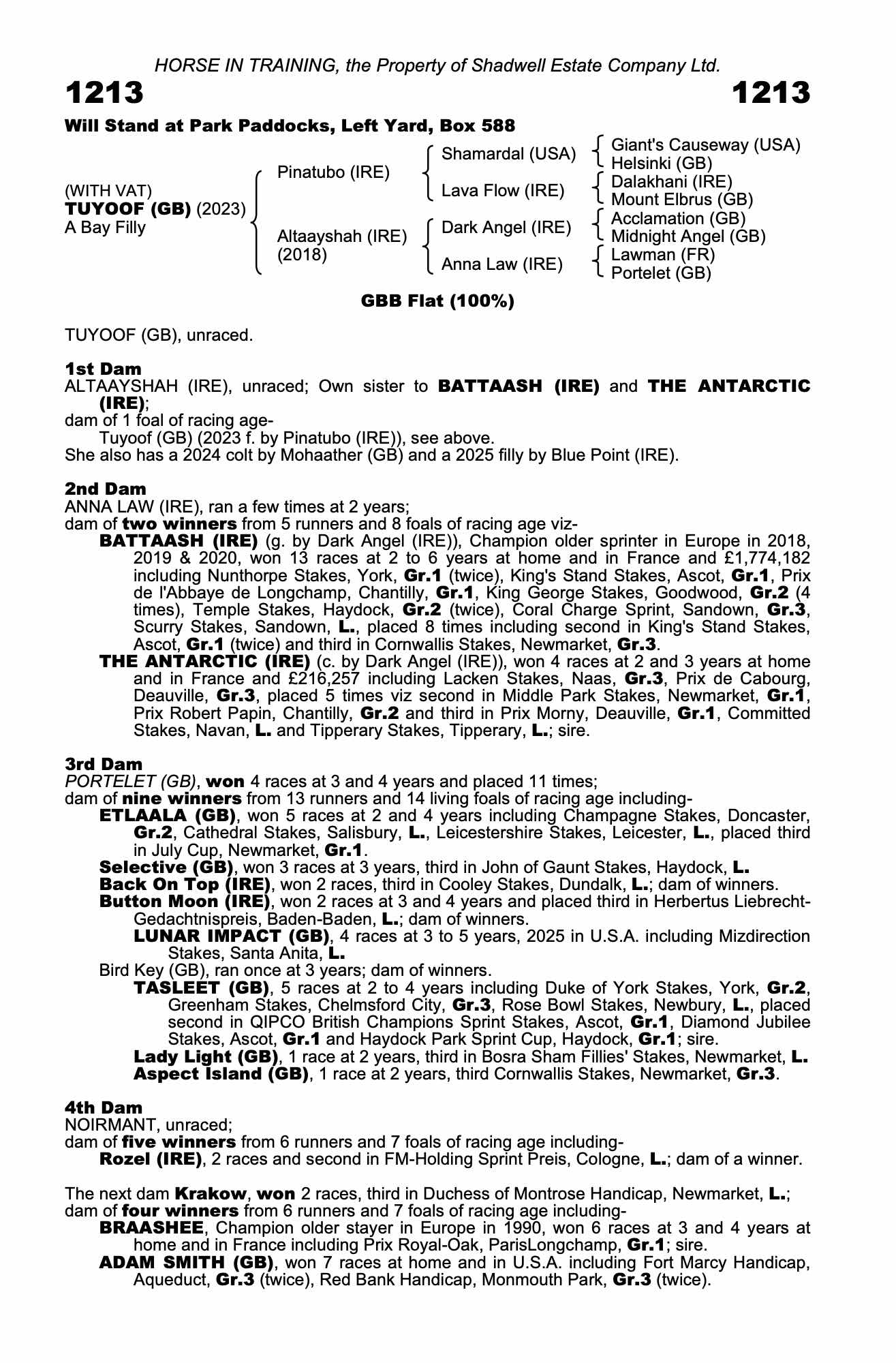 TUYOOF (GB), ran once at 2 years, 2025.
