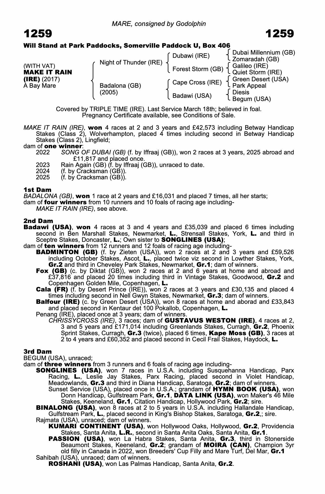 July Sale 2025 lot 225 Rain Again (GB) (F. by Iffraaj (GB)), Barton Sales=>Anthony Mccann 1,000 gns