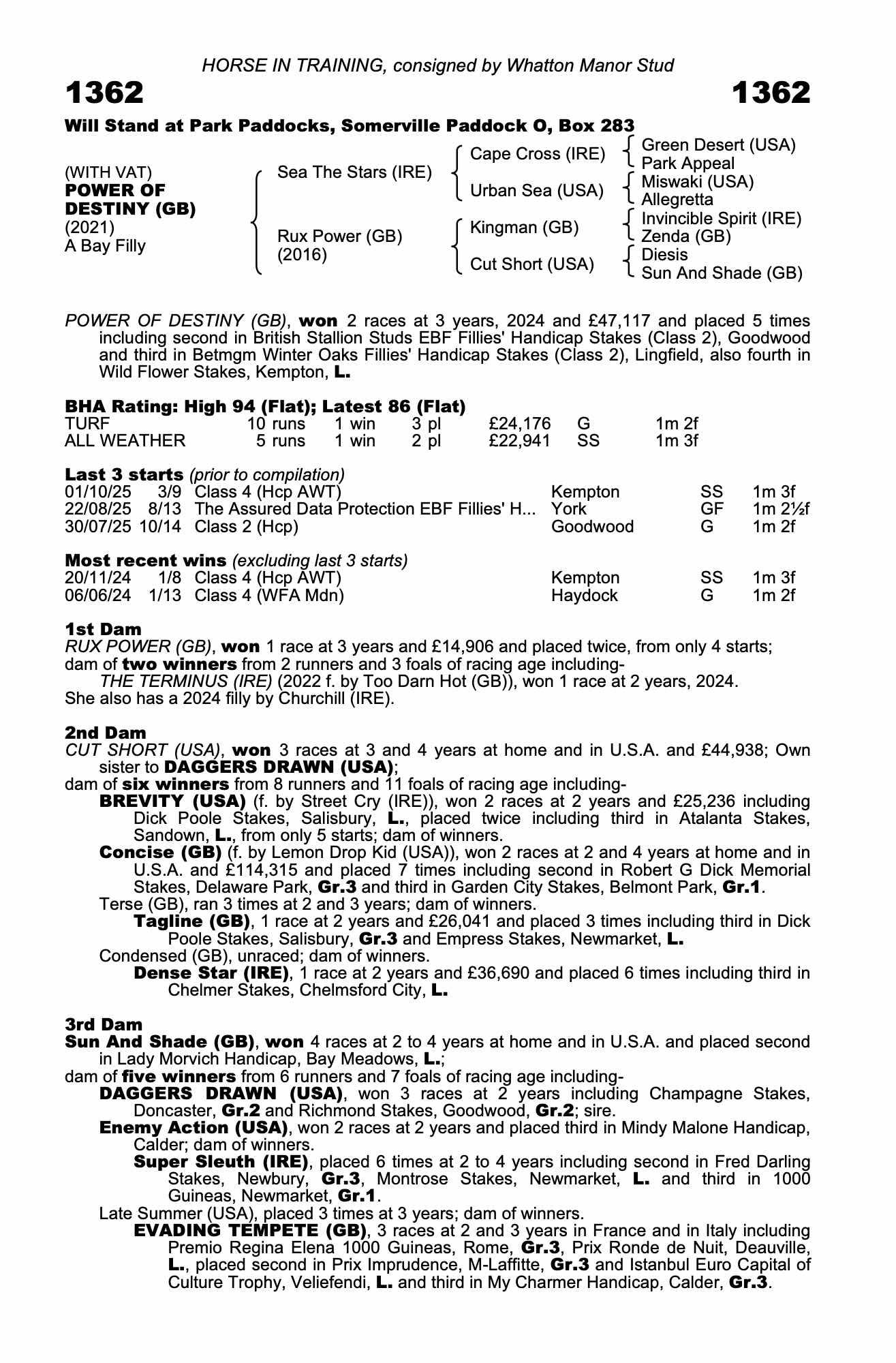 December Mare Sale 2025 lot 1256 The Terminus (IRE) (F. by Too Darn Hot (GB)), Whatton Manor Stud=>Kilpatrick Farms 35,000 gns