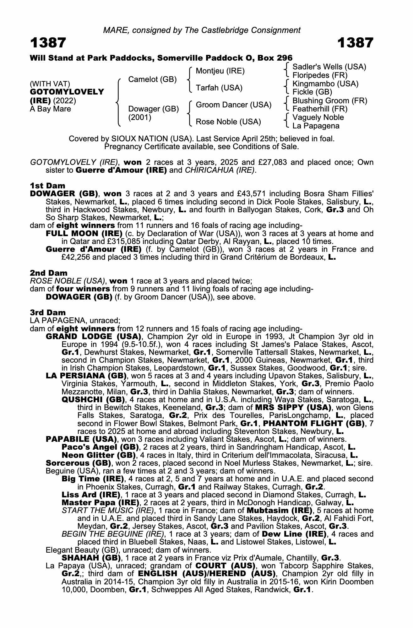 December Mare Sale 2021 lot 1532 Guerre d'Amour (IRE) (F.), Whatton Manor Stud=>Vendor 45,000 gns