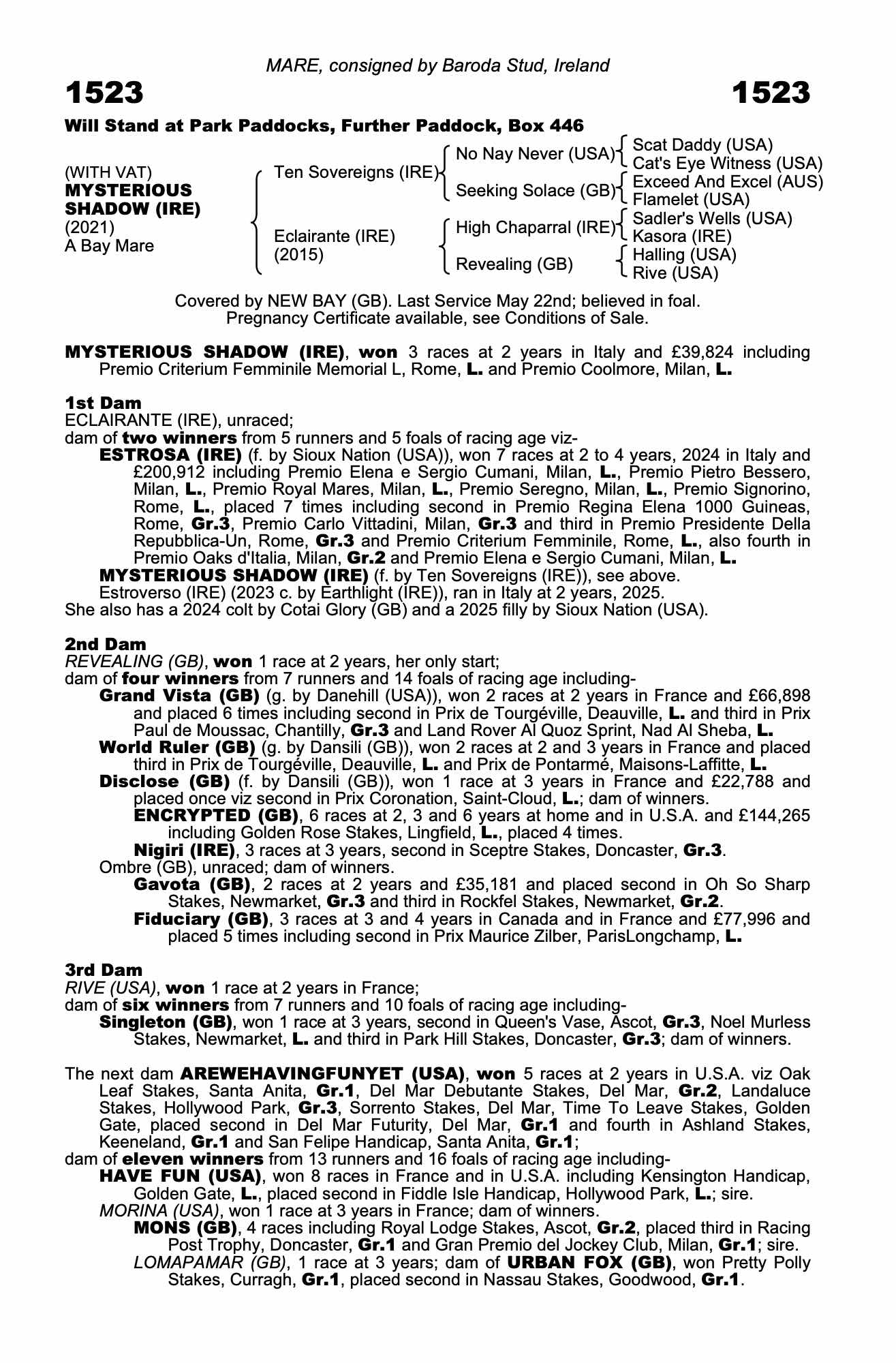 Consignor: Baroda Stud, Ireland