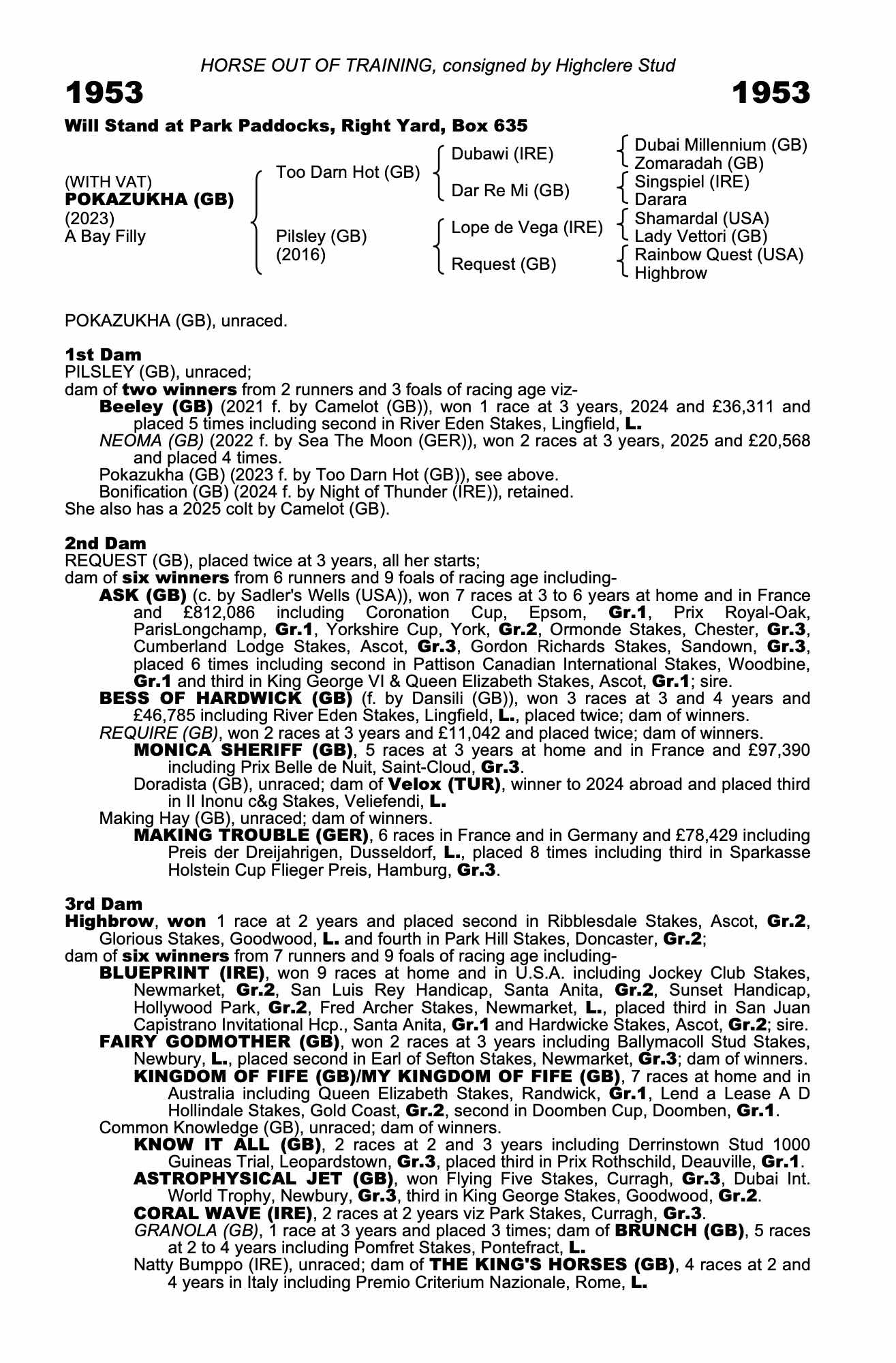 Contact: Jake Warren ✆ 01635 253212 ✉ info@highclerestud.co.uk
