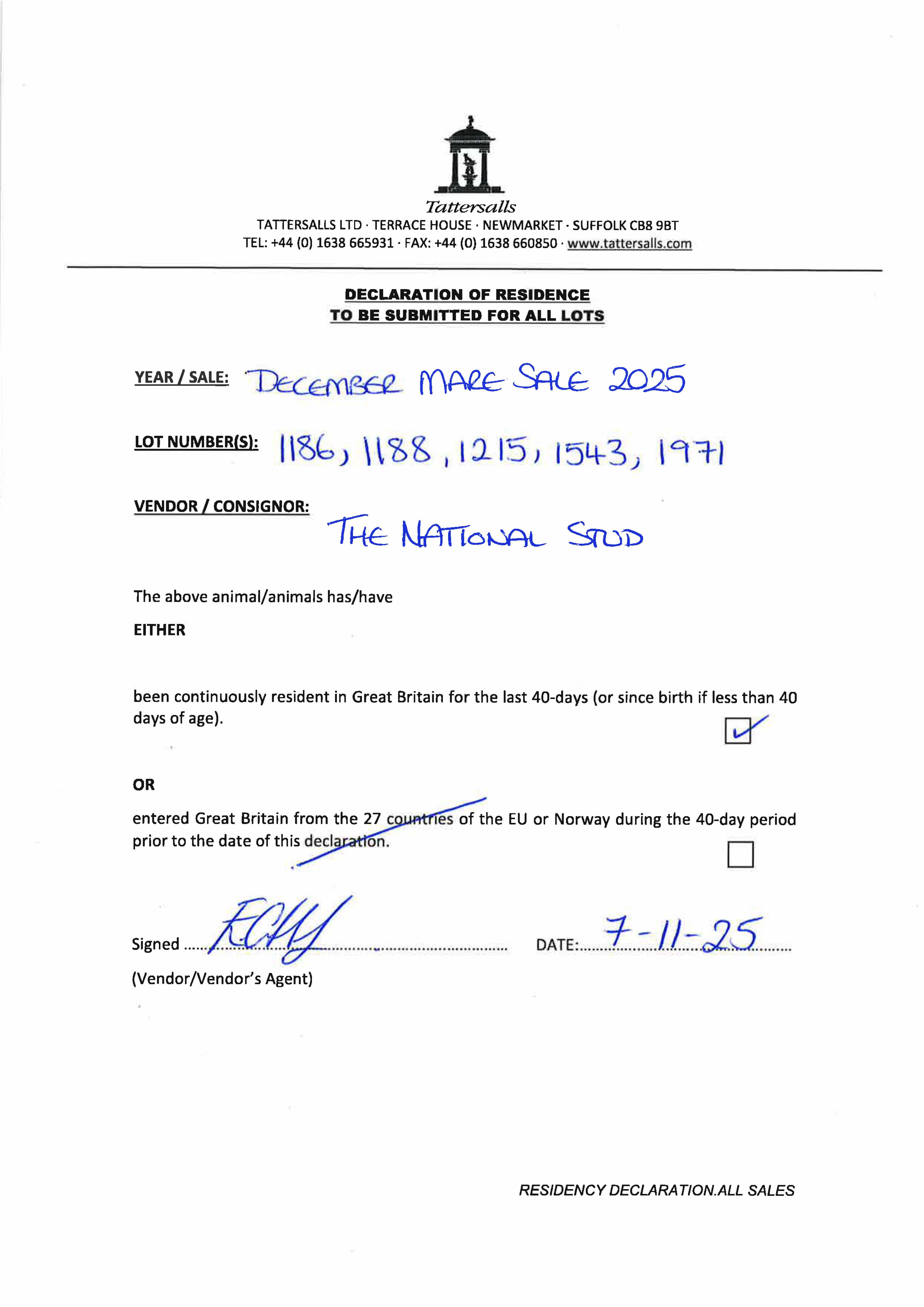 Consignor: The National Stud Ltd.