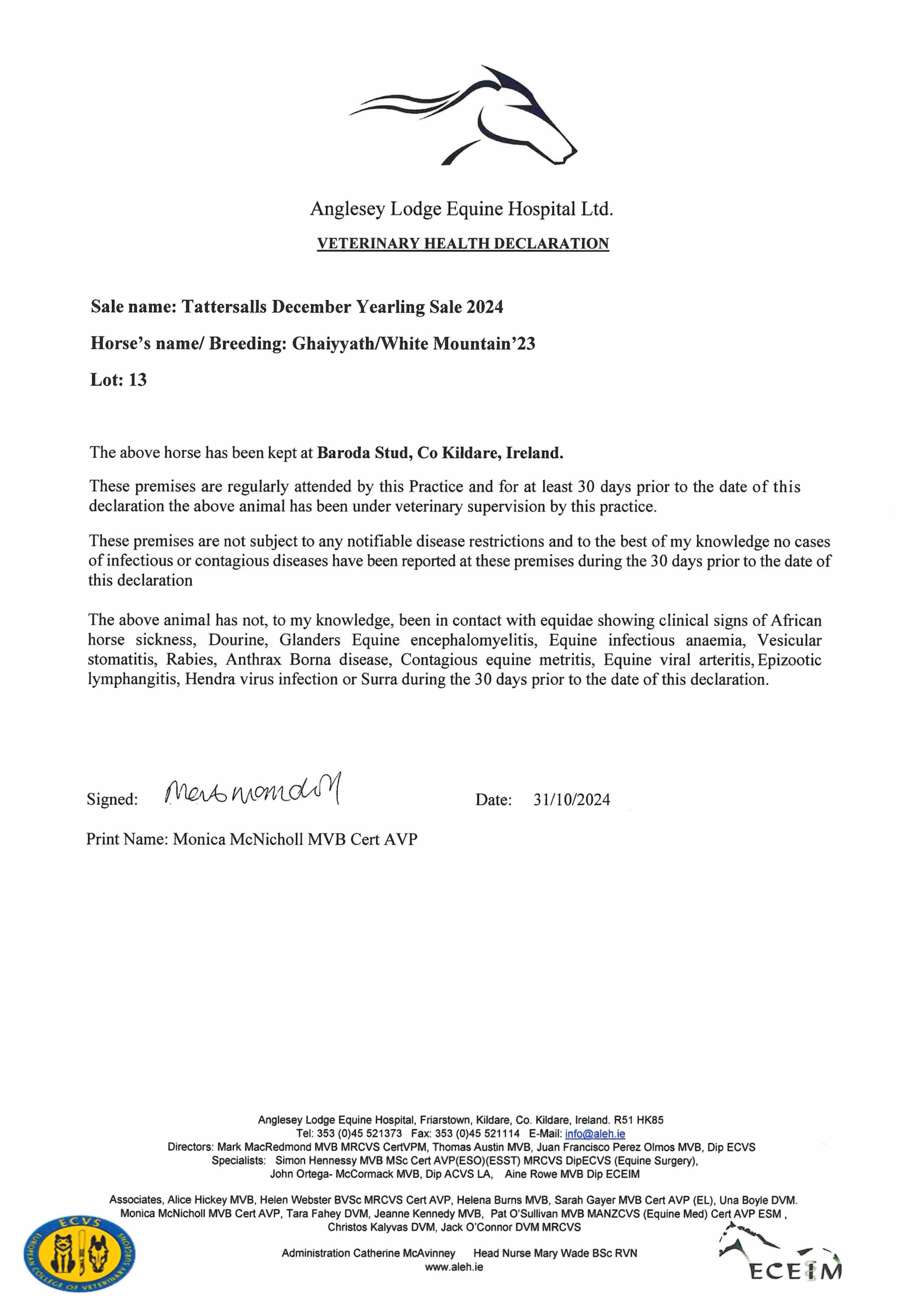 Ghaiyyath (IRE) / White Mountain (GB) B.F. (IRE)
