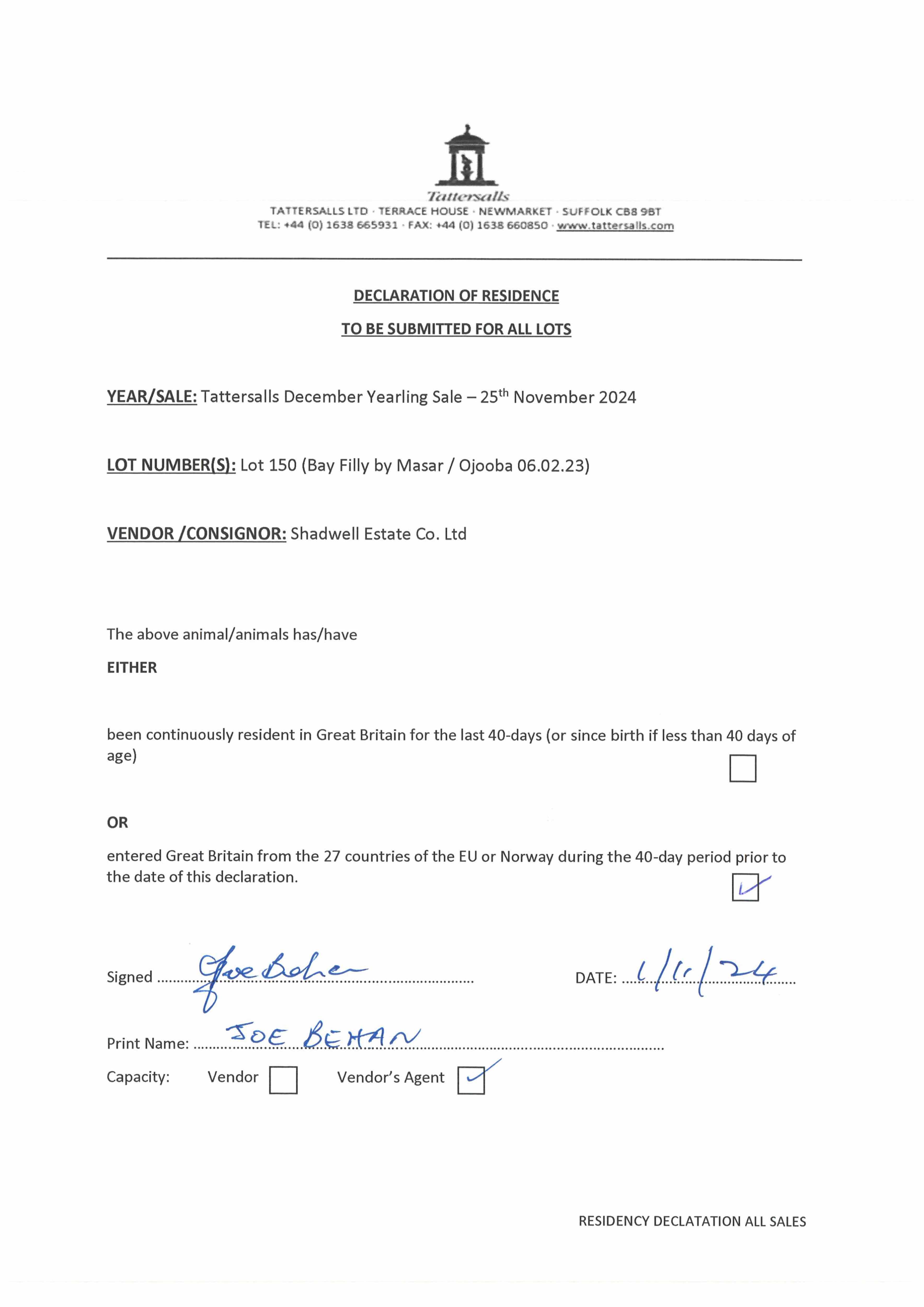 Consignor: Shadwell Estate Company Ltd.