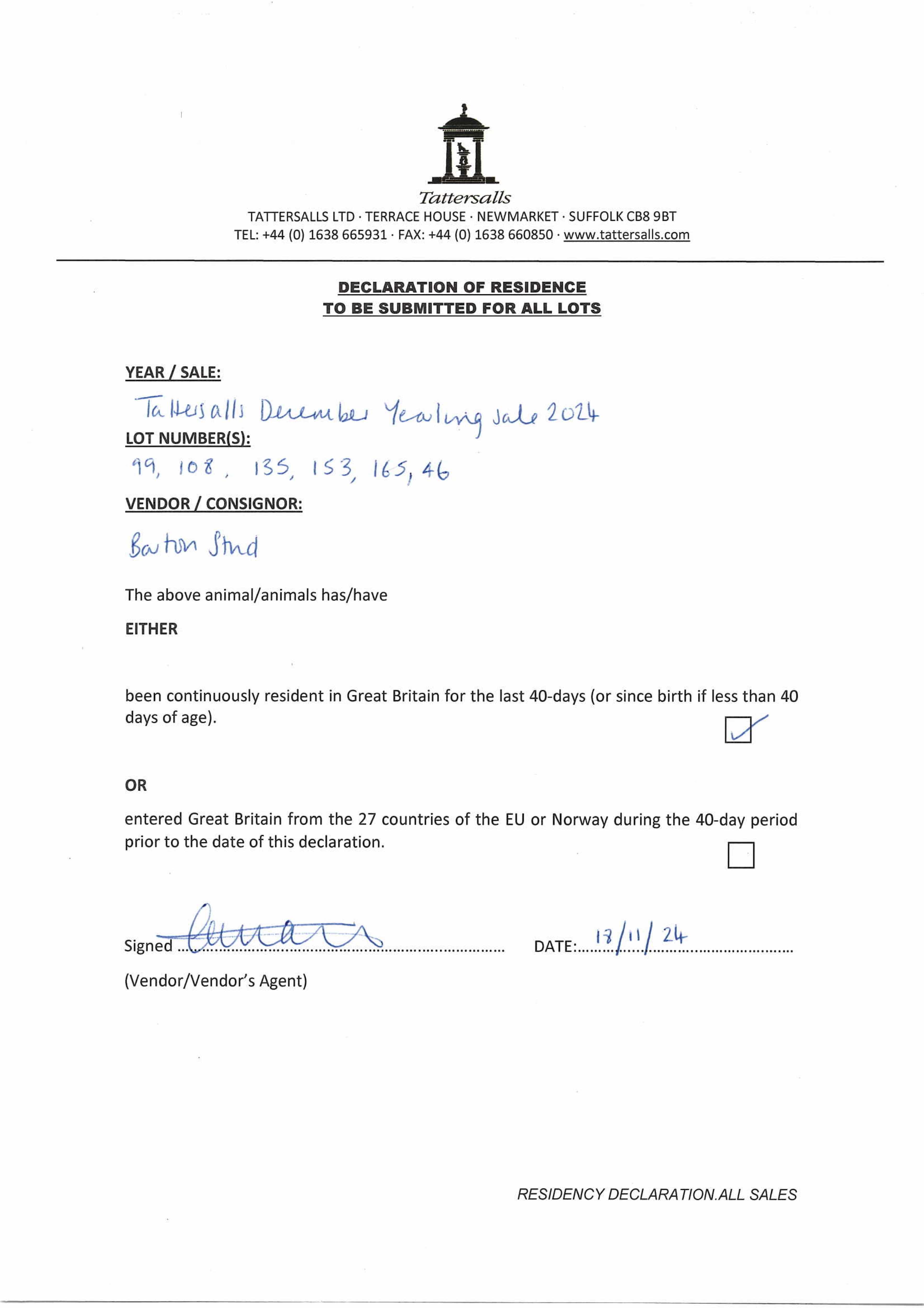 December Foal Sale 2025 lot 927 C. by Chaldean (GB) 2025, Barton Stud=>Barry Lynch 65,000 gns