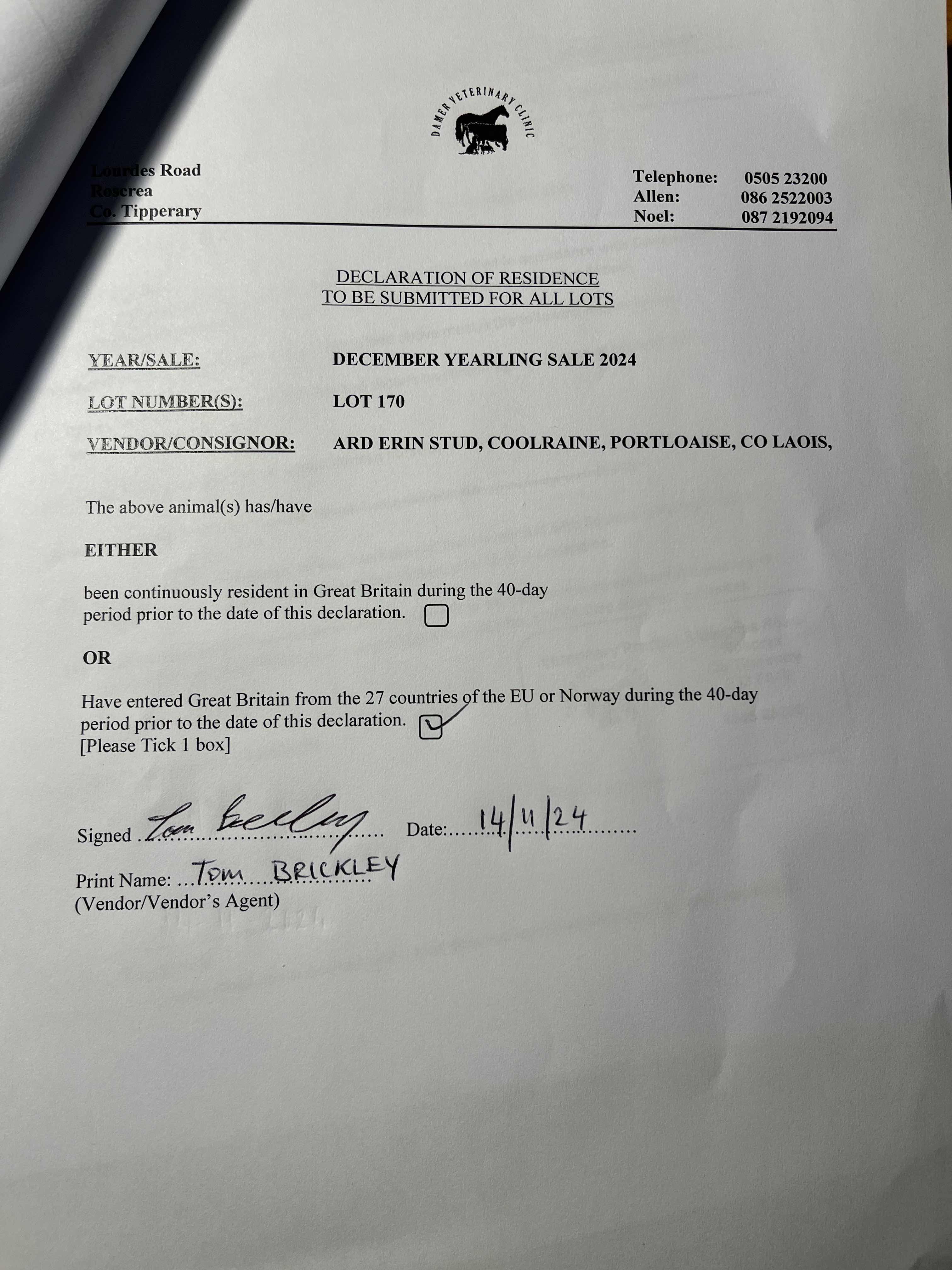 Consignor: Ard Erin Stud, Ireland