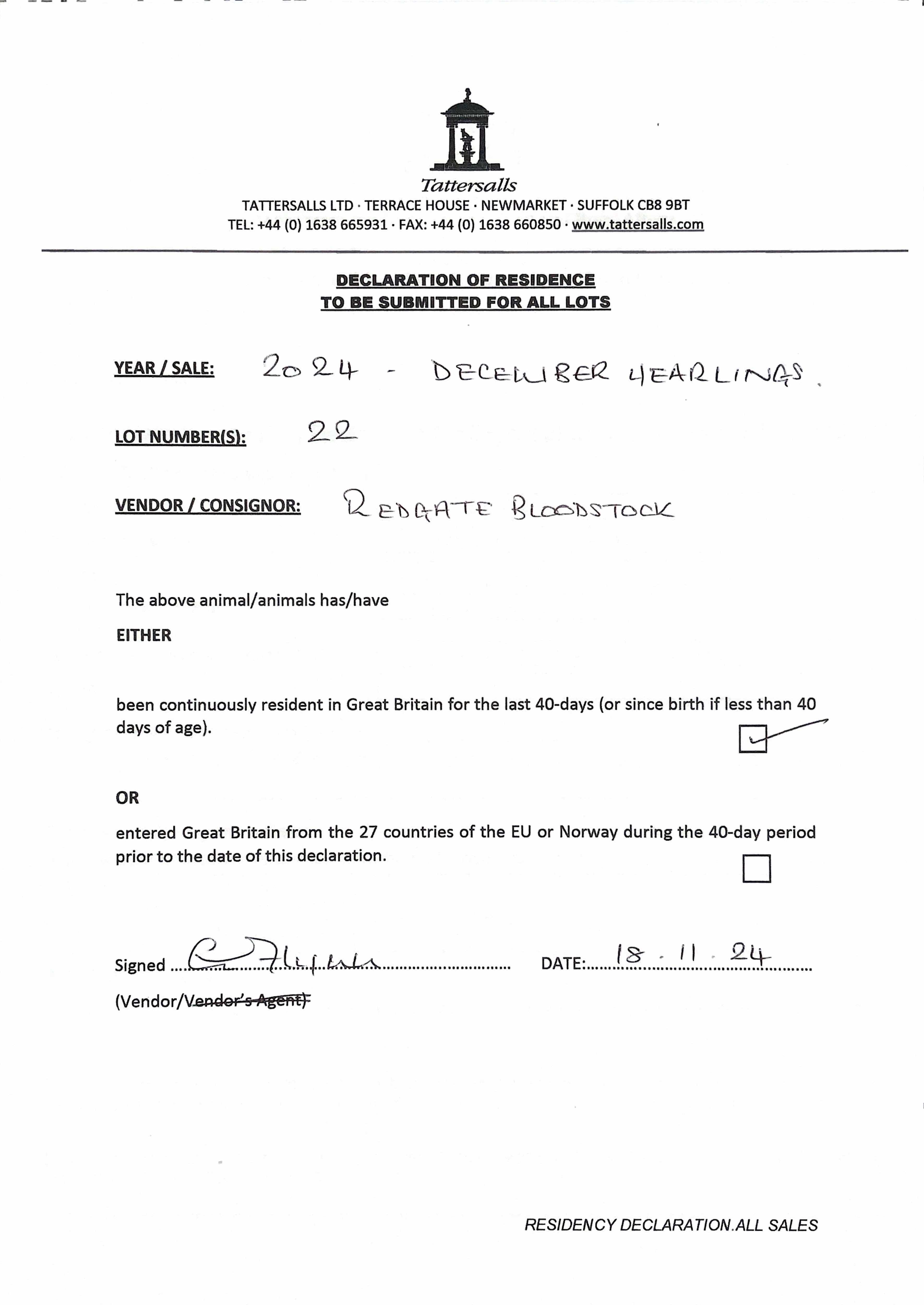 Somerville Yearling Sale 2023 lot 37 F. 2022, Herbertstown House Stud (Co. Kildare), Ireland=>Johnston Racing 25,000 gns