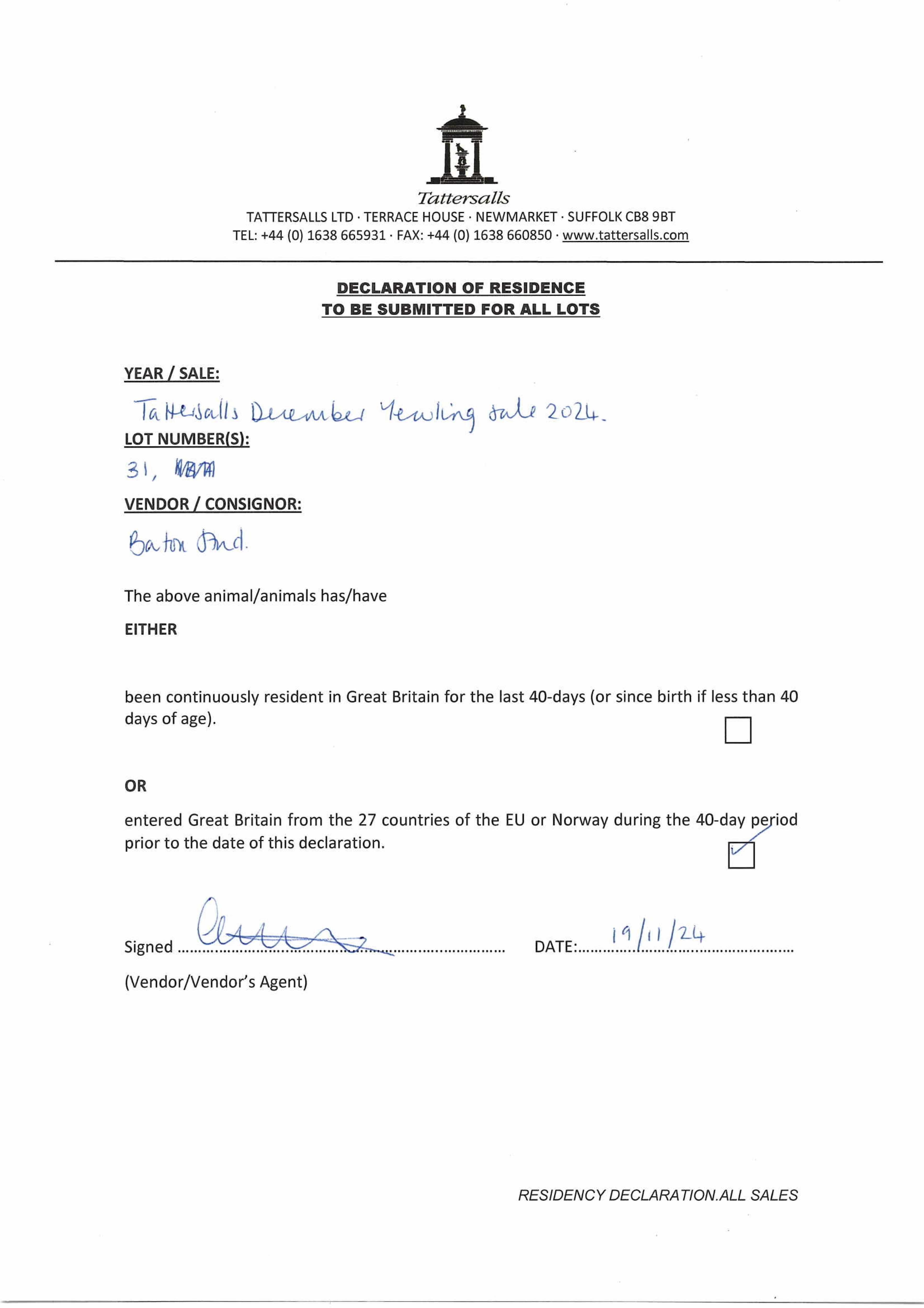 October Yearling Sale, Book 2 2023 lot 912 F. by Mehmas (IRE) 2022, Barton Stud=>JS Bloodstock 15,000 gns