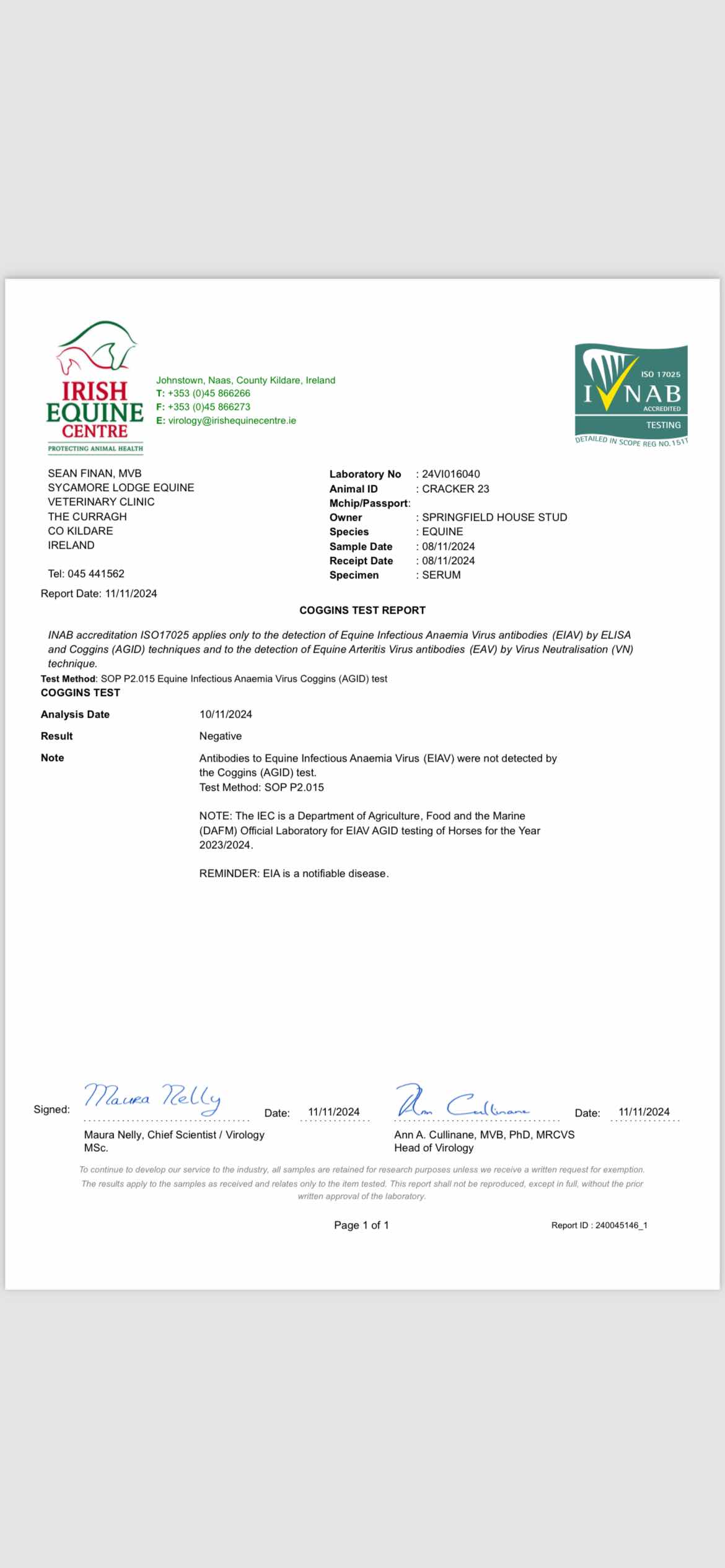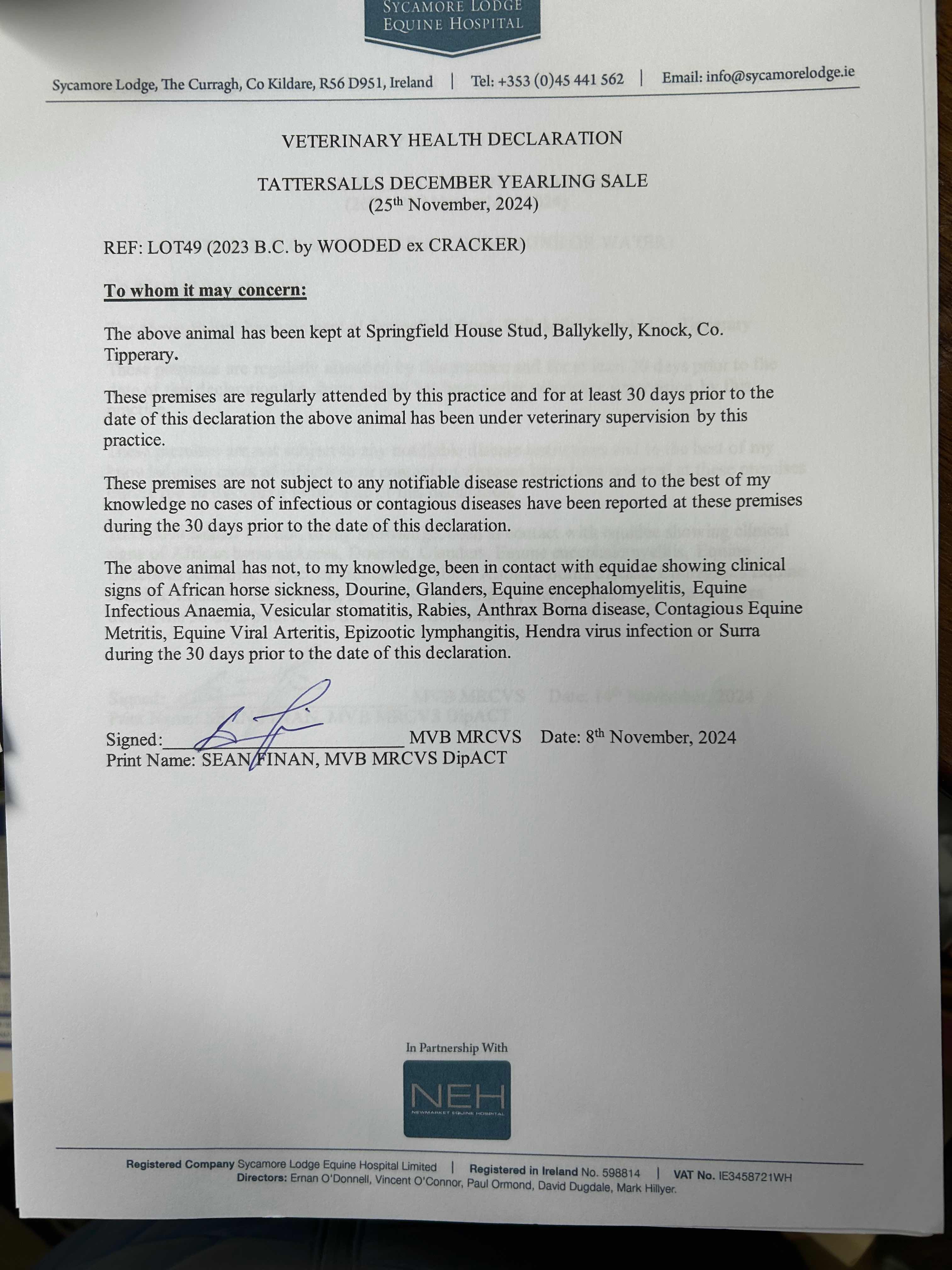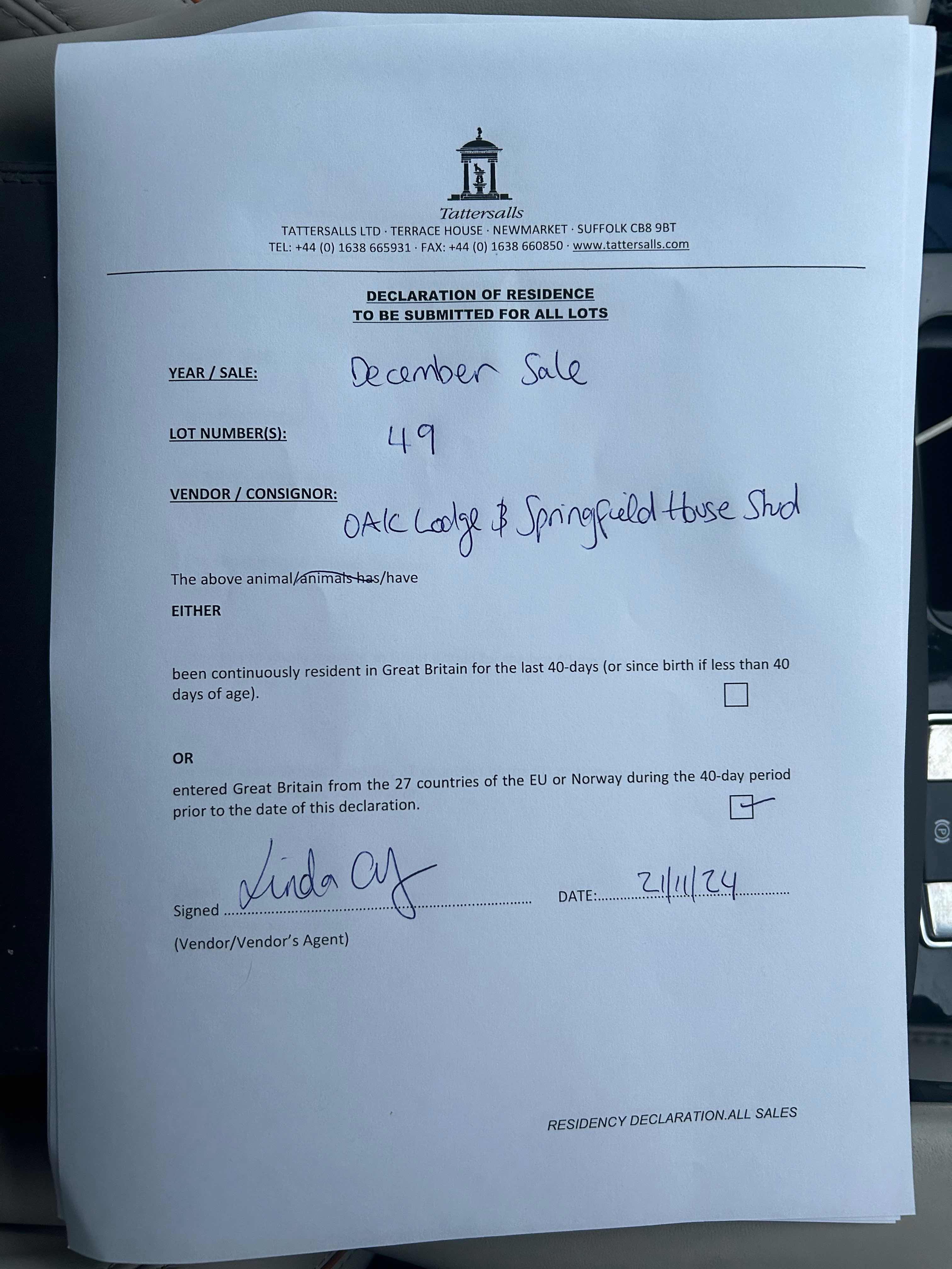 Consignor: Oak Lodge & Springfield House Stud, Ireland