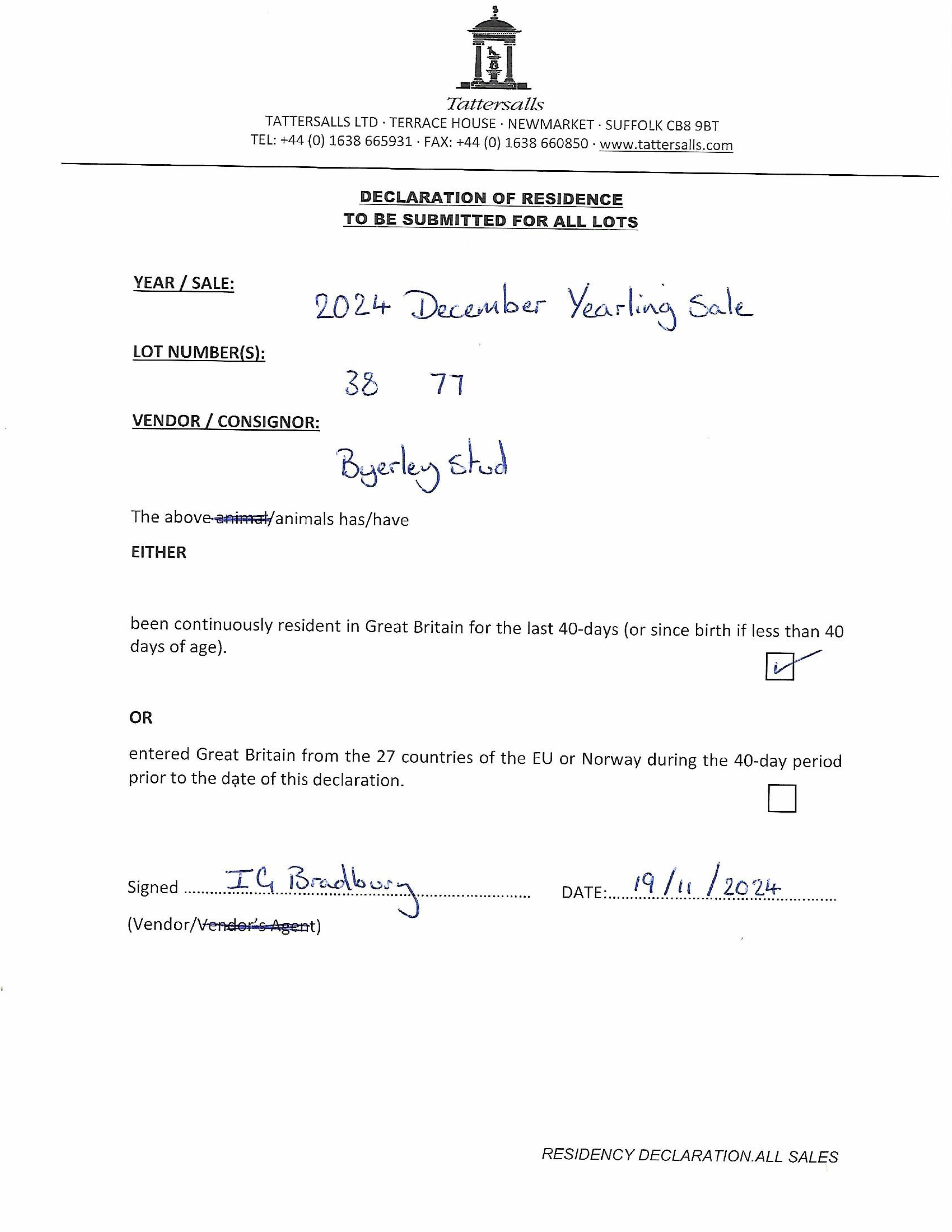 Consignor: Byerley Stud