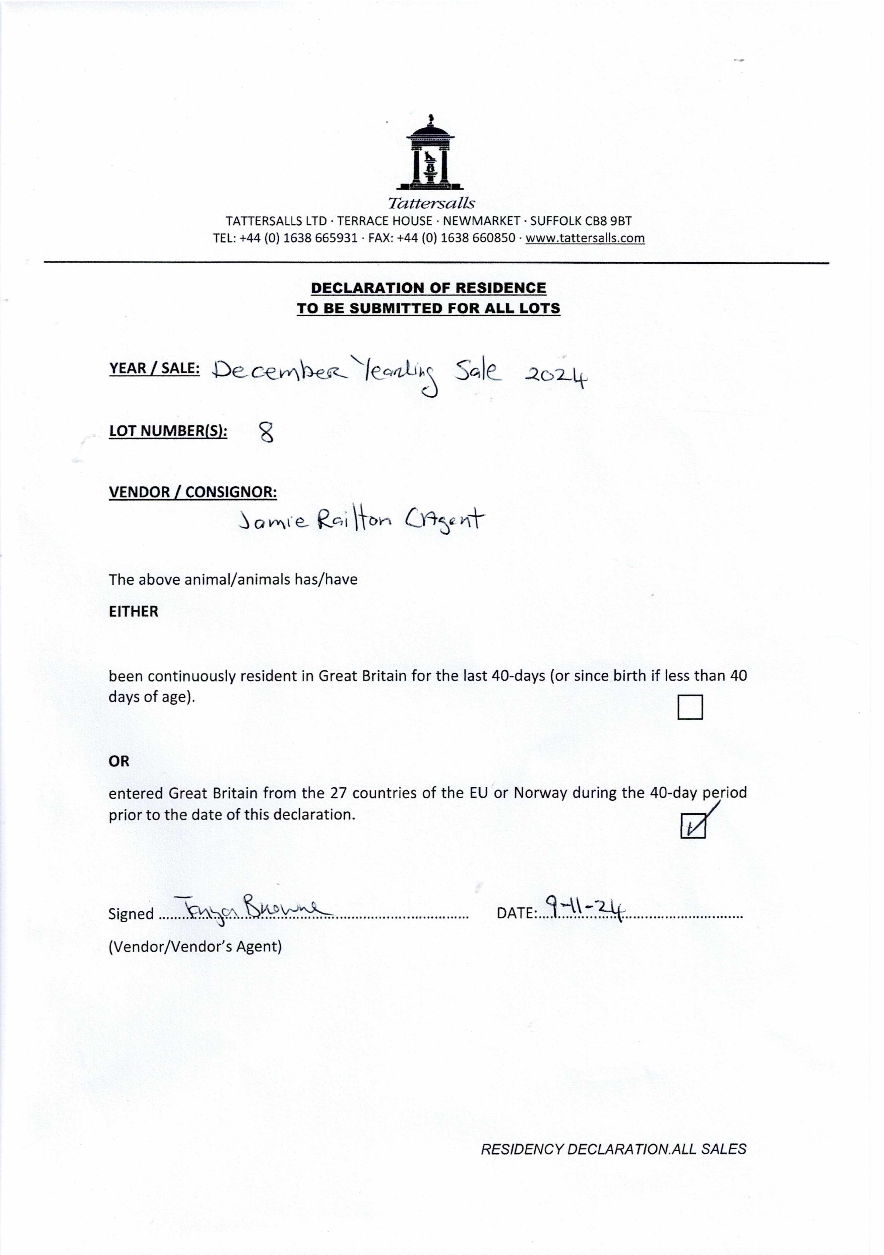 Consignor: Jamie Railton (Agent)