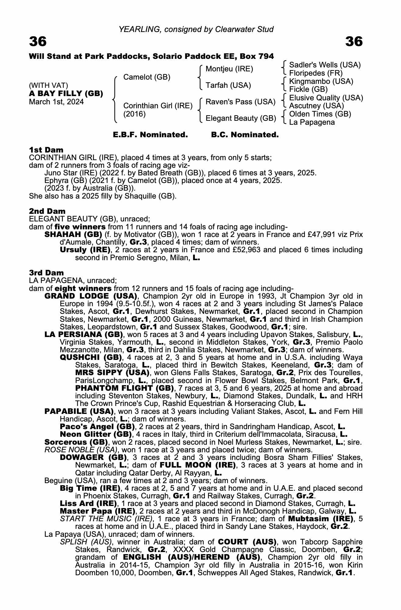 October Yearling Sale, Book 3 2024 lot 1603 F. by Australia (GB) 2023, Clearwater Stud=>Argamia Bloodstock 1,000 gns